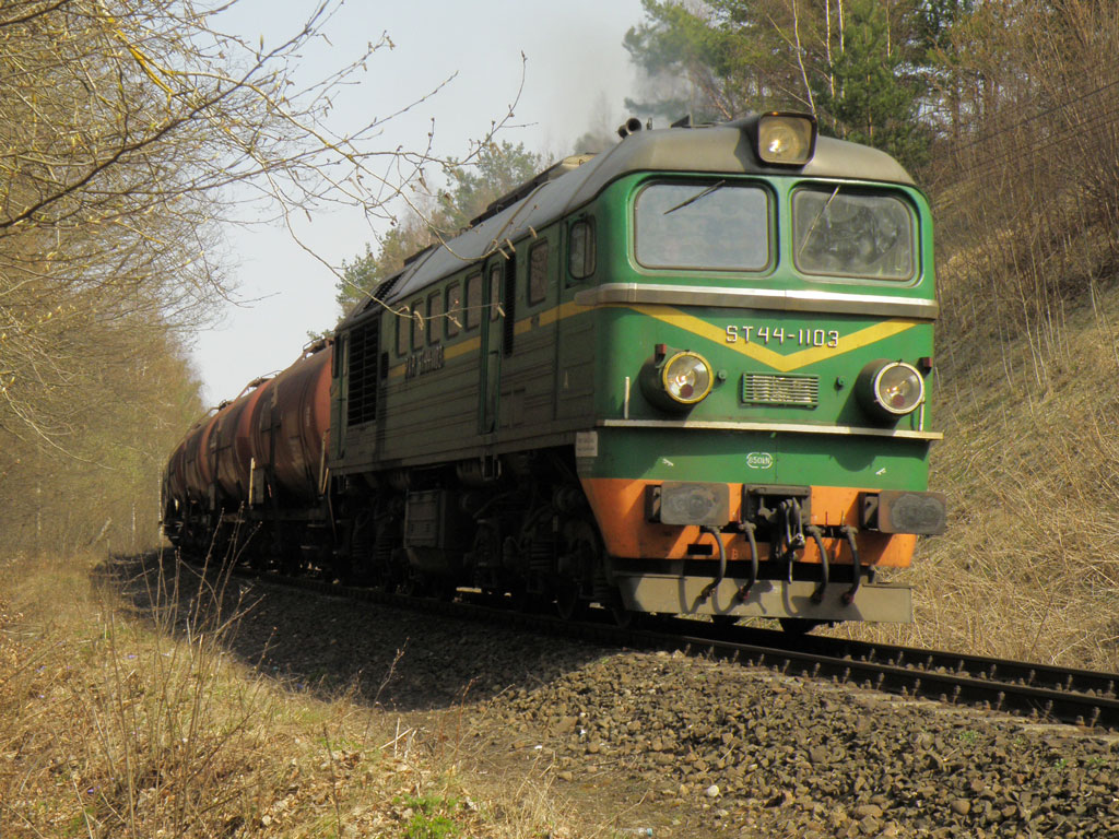 07. Nie tylko my oglądaliśmy objazdy 08. Wreszcie jakieś beczki! 09. ST44-1103 mija tarczę ostrzegawczą semafora wjazdowego do Gołubia