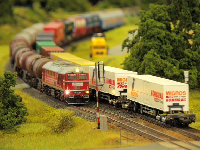 Oprócz wspólnej makiety można było podziwiać wiele interesujących modeli w gablotach. Nie zabrakło makiety modułowej kolei amerykańskich oraz makiety w skali TT. Ja, pomimo, że osobiście jestem zagorzałym zwolennikiem TT-ki, muszę przyznać, że na tego typu imprezy H0 chyba jednak lepiej się nadaje. Biorąc pod uwagę, że publiczność ogląda makietę z pewnej odległości, TT (o N-ce nie wspominając) jest jednak trochę za małe. Idealnie nadaje się natomiast do mieszkania, zwłaszcza w bloku.