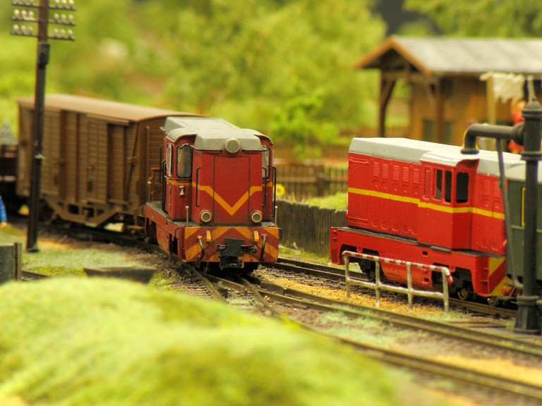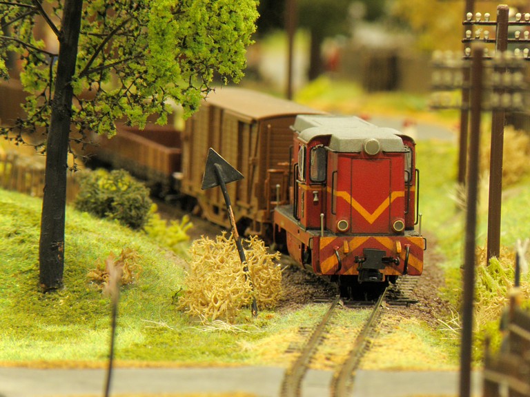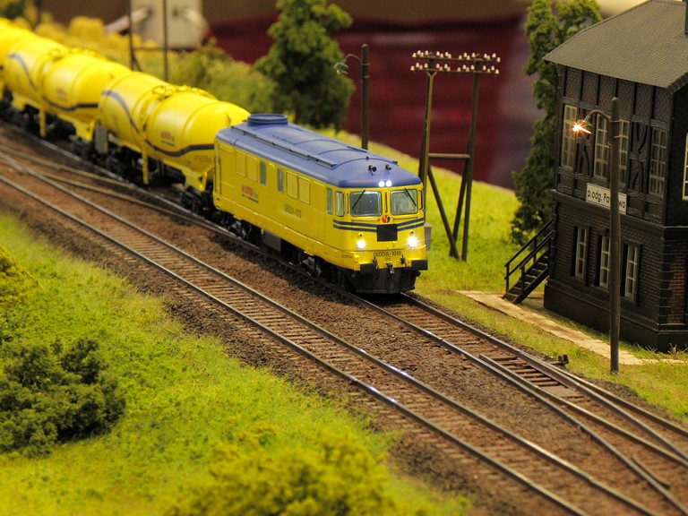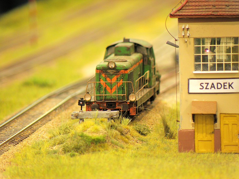 Centralnym punktem makiety była stacja Międzychód, od której odchodziły cztery linie kolejowe - udało się nawet zestawić działający bez zarzutu trójkąt. Nasza część znajdowała się w nitce prowadzącej do stacji technicznej Tychy. Tym razem przywieźliśmy model położonej na magistrali węglowej stacji Szadek, której głównym autorem i właścicielem jest administrator naszego serwisu www, Michał "AcidRain" Górecki (prywatnie prezes i właściciel ZNTK Kwachy ;) ). Oprócz tego jeden z naszych kolegów, Michał "Marcinlok" Żemkowski zaprezentował swój fragment dwutorowego zelektryfikowanego szlaku. Do Szadku podpiął się też nasz przyjaciel z Piły, Andrzej "Nohab" Paradowski, który przywiózł niewielką makietę terminalu kontenerowego, z jeżdżącymi samochodami.