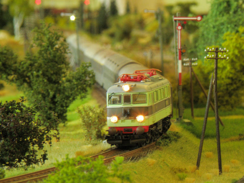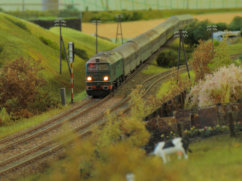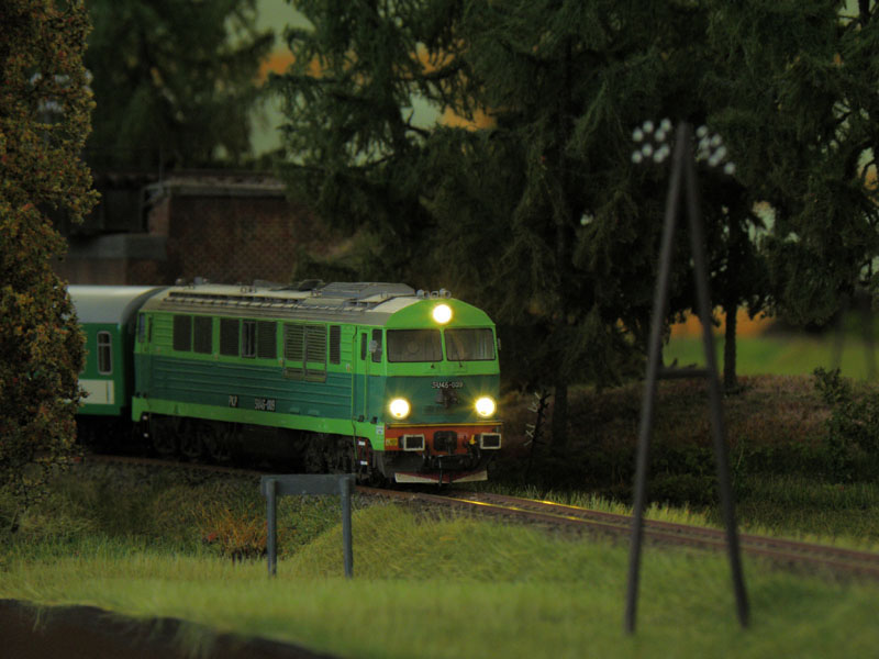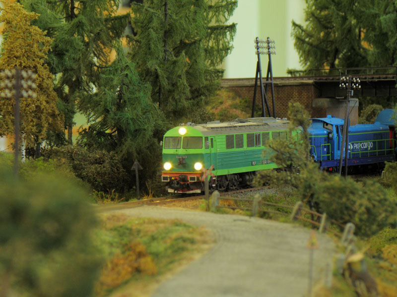 W dniach 8-10 kwietnia br. odbyła się druga już impreza organizowana przez Klub Hazero Poznań w Rogalinku. Podobnie jak w poprzednim roku główną atrakcją (oprócz oczywiście aspektu towarzyskiego) była zamknięta (bez udziału publiczności) zabawa przy wspólnej makiecie. Po raz kolejny uczestników ruchu kolejowego (maszynistów i dyżurnych) obowiązywał rozkład jazdy, zaś samo spotkanie umożliwiło nie tylko wzajemne „dotarcie się” przed następną publiczną prezentacją, jakie z reguły mają miejsce jesienią (targi Trako w Gdańsku, Salon Hobby w Poznaniu itp.), fragmentów makiet powstałych w różnych częściach kraju, ale także zwykłą zabawę posiadanym taborem. Podobnie jak w zeszłym roku ŁKMK wziął czynny udział w spotkaniu, „wpinając” w całość prezentowaną (i sprawdzoną w „boju”) już wcześniej makietę stacji Szadek, której oryginał znajduje się na magistrali „węglowej” w bliskim sąsiedztwie Łodzi. Nasz kolega Marcin „marcinlok” Żemkowski przywiózł nowe segmenty swojego dwutorowego zelektryfikowanego szlaku. Coraz częstsze pojawianie się na podobnych spotkaniach trakcji elektrycznej cieszy, chociaż jak na razie najczęściej wciąż jest to tylko atrapa stanowiąca raczej dekorację, a elektrowozy z reguły jeżdżą z opuszczonymi pantografami. Niemniej jednak monopol jednotorowych linii lokalnych z dominującą trakcją parową został wyraźnie przełamany, co z pewnością urozmaica modelowe szlaki. Jeśli chodzi o tabor poruszający się po miniaturowych torach, można było ujrzeć pełen przekrój epok, łącznie ze współczesnymi przewoźnikami prywatnymi. Po raz kolejny doskonale sprawdził się cyfrowy system sterowania ruchem LocoNET, a idea indywidualnego sterownika (tzw. Freda) przypisanego do jednej, konkretnej lokomotywy, który maszynista zabiera ze sobą podążając za składem i w razie potrzeby „wpinając się” do systemu by zmienić prędkość prowadzonego pociągu okazała się strzałem w dziesiątkę.