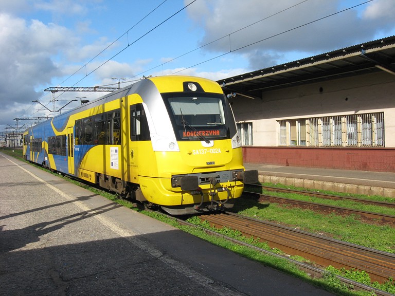 W związku z tym najpierw udaliśmy się we trzech (prezes postanowił tym razem odwiedzić Andrzeja Sadłowskiego w Rumii) do Gdyni, skąd szynobus powiózł nas piękną, starą "węglówką" do Kościerzyny. Stamtąd kolejnym szynobusem dotarliśmy do Chojnic, dalej "Ostbahnem" do Tczewa, skąd stary poczciwy kibel zawiózł nas "nową węglówką" z powrotem do Gdańska. Wycieczka bardzo fajna, tylko konduktorka nie mogła się nadziwić patrząc na relację na naszych biletach: -Z Gdyni do Gdańska jedziecie przez Kościerzynę, Chojnice i Tczew????. No cóż, nigdy nie udawaliśmy, że jesteśmy normalni ;-) .