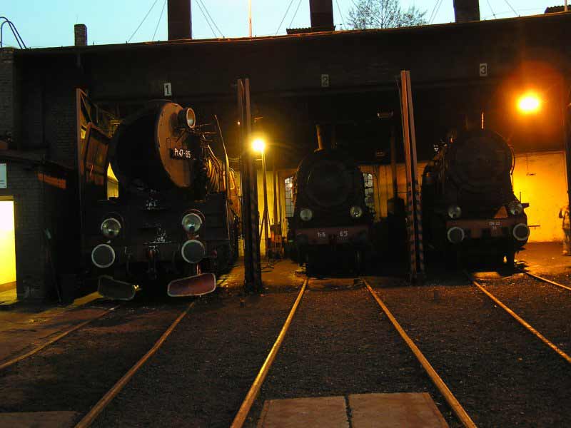 Robert wyciąga statyw, Andrzej znika w szopie, skąd widać tylko błyski flesza, robi się coraz ciemniej, przybywa miłośników kolei, jak można wysnuć po brzmieniu języka chyba z Niemiec, zwijamy się, do domu daleko a czasu mało.