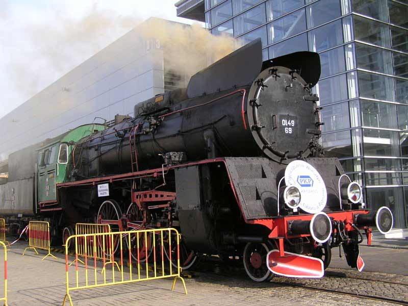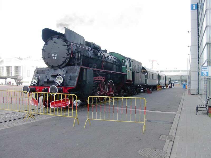 Po godzinie piętnastej zaczyna się robić luźniej, możemy sobie pozwolić na wypad do baru, na pyszne naleśniki z jabłkami, oraz na zrobienie fotek parowozu Ol49-69, który z odpustowymi tablicami z boku ostoi i okrągluśką tarczą na dymnicy, przyjechał, aby uświetnić Salon Hobby, i choć mało poważny, zawszeć to parowóz.