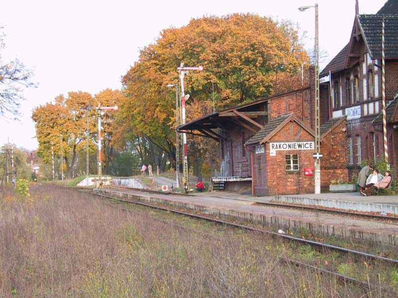 Oceniamy nasze szanse na dogonienie pociągu, decydujemy się na złapanie go w Rakoniewicach, znów szaleńcza jazda, która zaowocowała piętnastominutowym oczekiwaniem na pociąg, rozstawiamy się i czekamy, podobnie jak podróżni na peronie tylko bardziej nerwowo. Jest pięknie wychodzi zza zakrętu i majestatycznie wtacza się na stację, krótki postój i odjeżdża pozostawiając na krótką chwilę zapach prawdziwego parowozu.