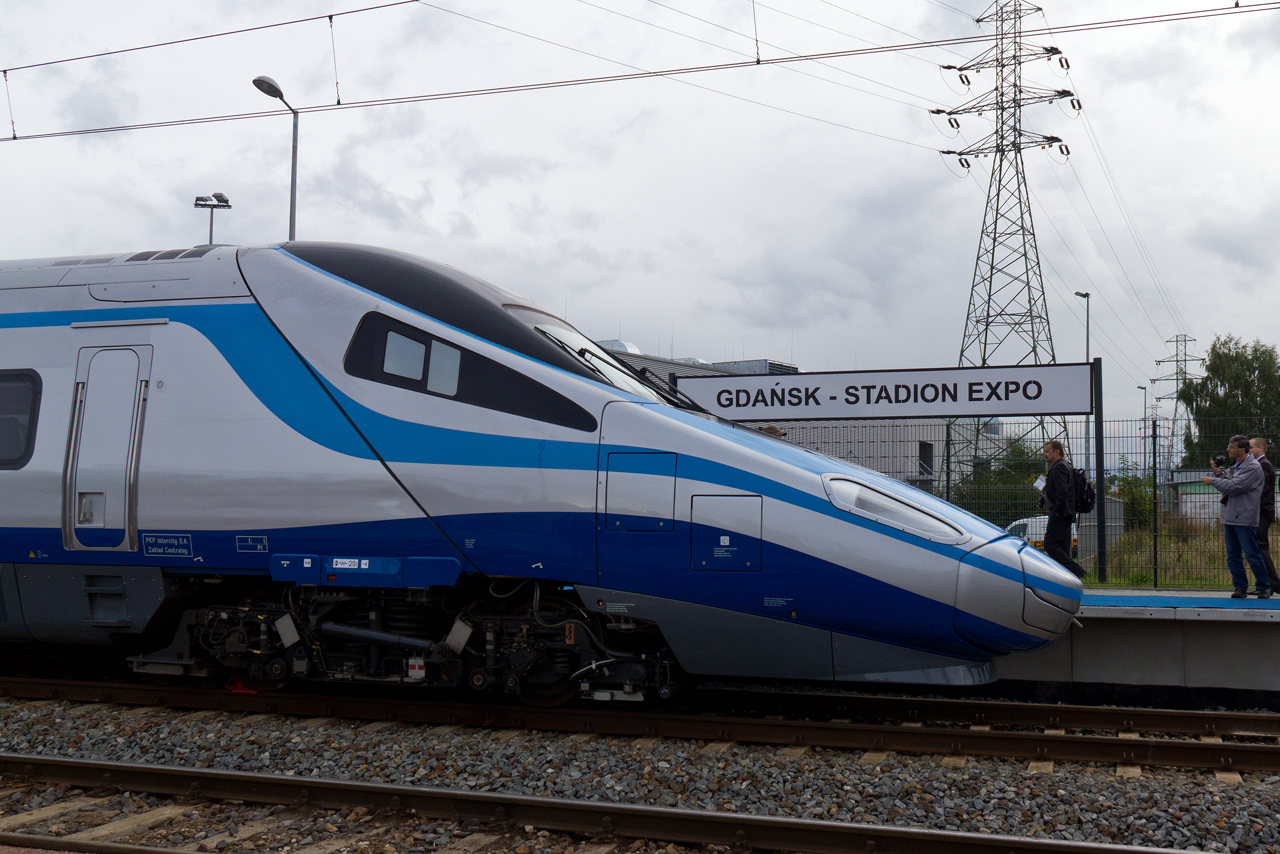 Niewątpliwym hitem tegorocznej edycji był pociąg Pendolino, zakupiony za „niemałe” pieniądze, przeznaczony do szybkiej jazdy po naszych „nowoczesnych” torowiskach, nie wyposażony w „niepotrzebny” w naszych warunkach system wychylania pudeł. W dodatku przedstawiciele naszego „kulturalnego” społeczeństwa „pięknie” go przyozdobili nanosząc „gustowne” graffiti. Pomijając dyskusję o celowości zakupu tego typu składu w naszych, polskich warunkach, nie da się ukryć, że prezentował się rzeczywiście imponująco (moim skromnym zdaniem oczywiście), zwłaszcza dzięki przeuroczej oprawie konduktorskiej ;-). Pociąg wzbudzał naprawdę duże zainteresowanie publiczności i sporo trzeba było wystać, by dostać się do środka. Tu nam zdecydowanie brakło cierpliwości.