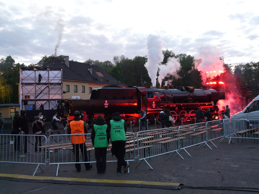 Wieczorem tak piźdźiło że założyłem przezornie zabraną zimową kurtkę. Po powrocie ratowaliśmy się toruńską wiśniówką. Grupa nadętych oszołomów z dredami, ustawiała światełka i głośniki na pokaz wieczorny, skutecznie wpierdalając się w kadr za każdym razem. Czesi i Słowacy maszyny zostawili na zewnątrz naprzeciw nastawni. Zrobiło się ciemno a ja choć pamiętałem nie zabrałem statywu.
