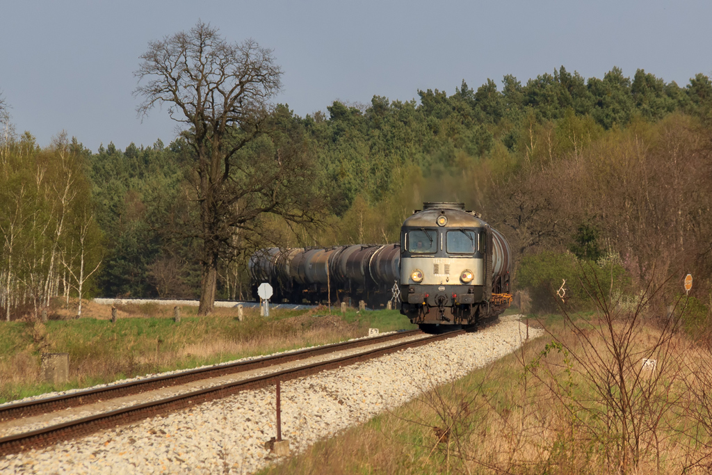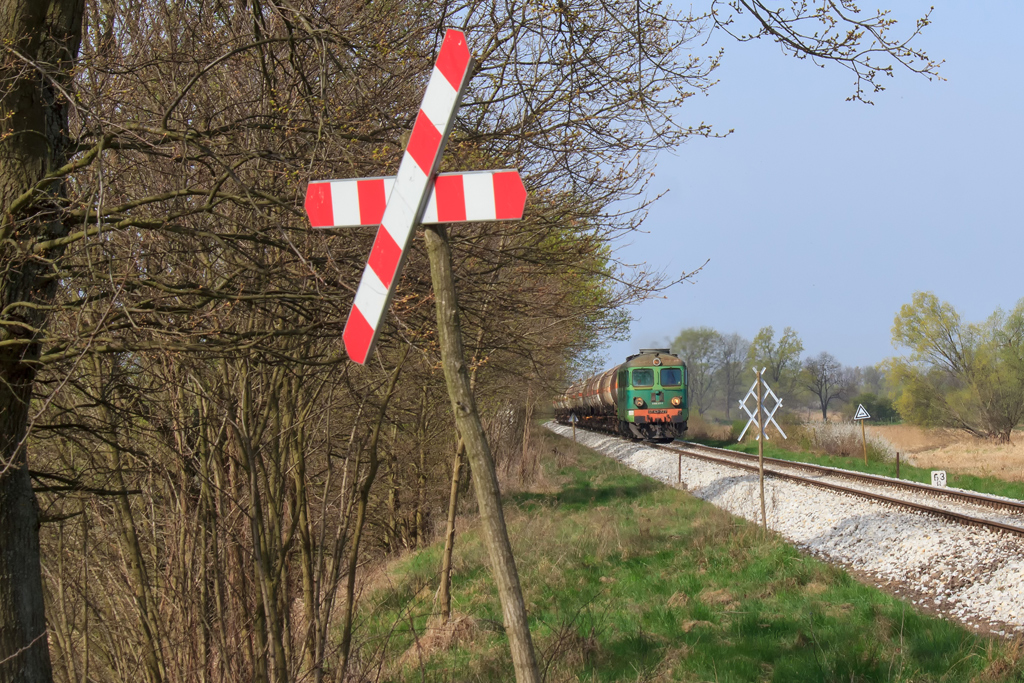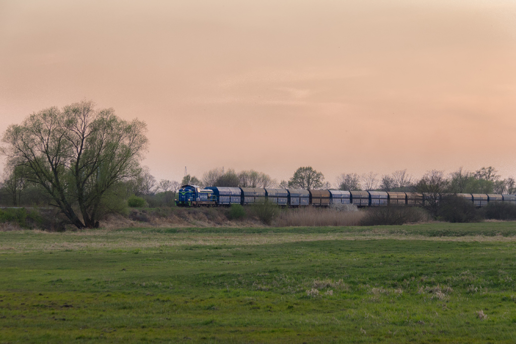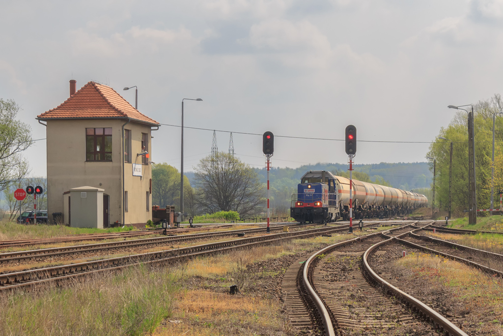 Słońce nieubłaganie przesuwa się w kierunku osi torów i motyw traci sens, zbieram graty i zmierzam na przejazd przed tarczą do Krosna by zapolować na kolejny zaplanowany kadr. Zalegam sobie wygodnie w trawie, gapiąc się w niebo, napawam odgłosami natury. Dobrze po 16-stej z błogostanu wyrywa mnie meldunek składu pod tarczą. 2,5 milisekundy później dociera do mnie nieparzysty numer pociągu, czyli on jedzie z mojej strony! Zrywam się na równe nogi a ta cholera zapitala szeptem i jest już w połowie łuku. To zasługa modernizacji szlaku między Czerwieńskiem a Krosnem. Wcześniej w tym miejscu było 60 i pociąg było słychać niemal na wyjeździe z Ciemnic. Teraz szlakowa to 100, tam jest z górki, zero przejazdów więc klasyczne OKP. 060Da CTL-a z beczkami przemknął koło mnie jakby go stado diabłów goniło. Dobrze, że chociaż miałem aparat pod ręką. Kadr można uznać za zaliczony a ja przemieszczam się na drugą stronę szlaku. Tym razem postanowiłem być bardziej czujny. I całe szczęście bo dwie godziny później ST43-227 z krótkim składem przemyka w kierunku Niemiec, również na głucho. Miejscówka wyczerpana, nie pozostaje więc nic innego jak powlec się na przejazd bliżej Krosna. Niestety odzywają się zmasakrowane stawy kolanowe i idzie się coraz ciężej. Słońce świeci już niemal poziomo, tuż nad linią drzew a od strony Czerwieńska słychać trąbkę. Ten dla odmiany miał dobry dzień bo trąbił jak opętany i po chwili kolejny „czarnuch” z beczkami mknie do Gubina. Dodatkowo z drugiej strony melduje się następny skład i będzie krzyżowanko. Stonka z talbotami wlecze się już po zachodzie a ja zbieram się w kierunku hotelu. Dotychczas śniadania były od 7:30 więc zamawiam swoje na 8-mą z chytrym planem porannej wycieczki na stację, powrotu na pyszną jajeczniczkę i dalszych działań w terenie. Padam na wyro po 21-szej i zasypiam niemal natychmiast.