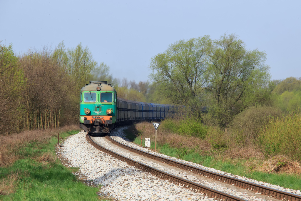 Rześki poranek i kolejne pyszne śniadanko szybko stawiają na nogi. Koło południa mam autobus powrotny więc nie ma sensu jakakolwiek dalsza wycieczka. Rozsiadam się wygodnie na ładowni i sączę świeże zakupy. Do 11:30 odliczają się trzy pociągi i to w bardzo podobnej konfiguracji jak przy poprzedniej solówce. Z resztą cały wypad potwierdza charakterystykę tej linii, piątek wygaszanie ruchu, sobotnia martwica i wzrost w niedzielę. Trzeba przy następnym wypadzie wziąć to pod uwagę.