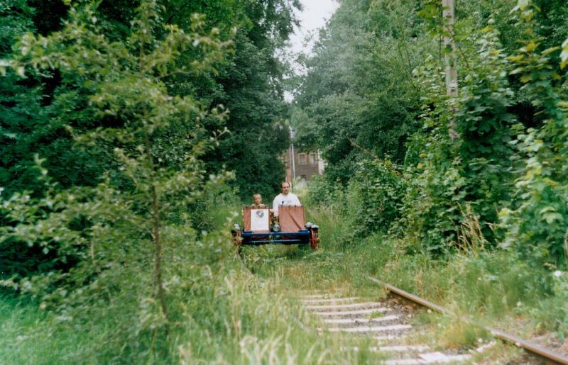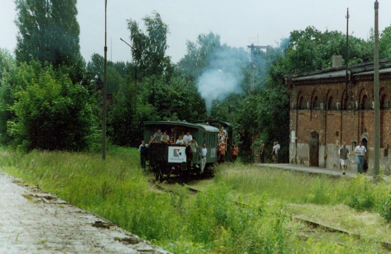 Trzeba było pojechać po ukryty na bocznicy wagon, tu musimy się pochwalić, że jak przystało na rasowych miłośników kolei wprosiliśmy się na teren zakładów i z doczepionym wagonem wróciliśmy (ja i Piotrek Barcz) stojąc na podeście lokomotywy, zrobił nam zdjęcie w tej epokowej chwili Radek, niestety zdjęcie nie wyszło i pozostaje nam tylko jego świadectwo.