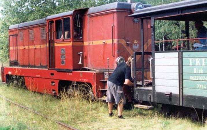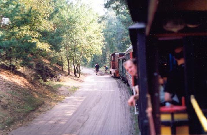 Po drodze czeka nas jeszcze jedna atrakcja, tor kolejki krzyżuje się z polną drogą, samochody przejeżdżające przez tory zasypują je piachem, stajemy obsługa pociągu łopatami udrażnia tor i dalej.