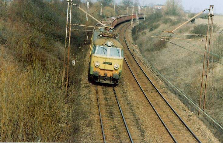 Ruszamy polna drogą wzdłuż torów, nagle Piotrek hamuje i na wstecznym cofa ile fabryka dała w stronę wiaduktu, nawet nie pytam, po co, wyciągam aparat, udaje nam się zrobić zdjęcie ET22-835 ze składem węglarek.