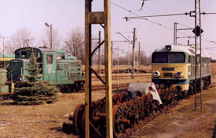 Pora udać się na stację, pozorny spokój nawet bezruch, i nagle pomyka WM10 mijając w peronach ET22-384 ze składem węglarek, na bocznych torach stoją dwa pługi odśnieżne, 411sXua-591946 z lokomotywowni Piotrków Tryb. oraz OMW3A z lokomotywowni Łódź-Widzew.
