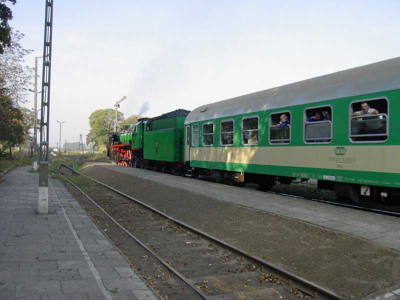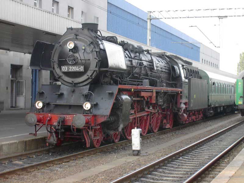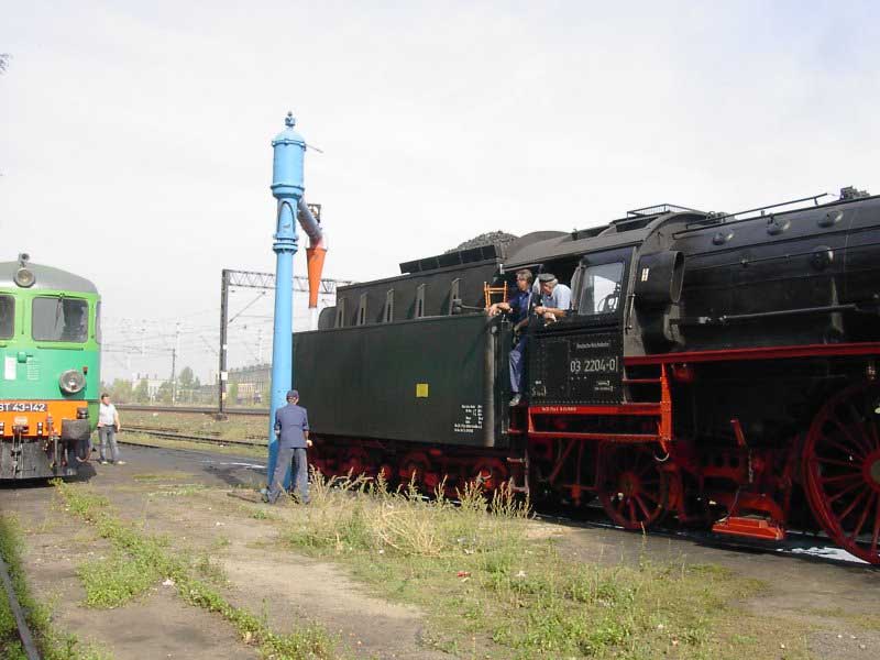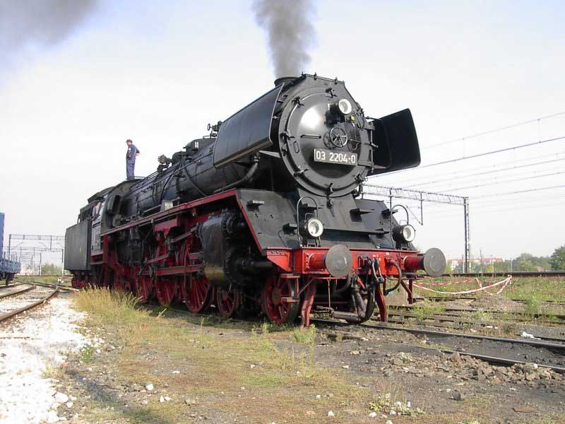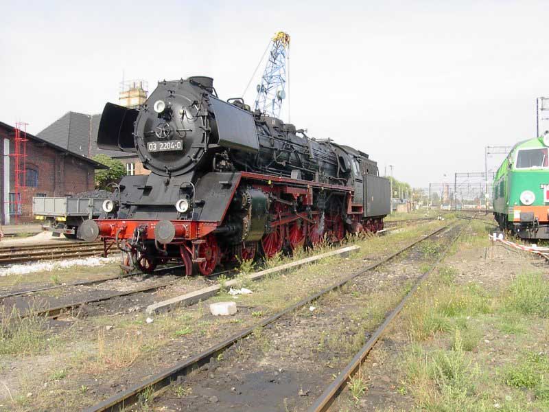 Wycieczka zorganizowana "na szybko" stała się konsekwencją wizyty w EMPIK-u. Lektura Eisenbahn Kuriera pozwoliła odnaleźć wśród wielu ogłoszeń, również i to o wizycie parowozu BR03 2204-0 w Poznaniu. Zerknięcie na stronę łużyckiego klubu, którego parowóz jest własnością i decyzja o wyprawie do stolicy Wielkopolski gotowa. W perspektywie są jeszcze, co najmniej dwa parowozy. Jadący tego dnia do Wolsztyna "Grzybiarz" z Pm–36 i Borsig na Maltance. Cicha nadzieja, bo pewności nie mieliśmy żadnej, że to wszystko się potwierdzi, gnała nas Roberta "Felą" od szóstej rano. Pierwsza radość po dotarciu na miejsce, gdy przed szopą na Malcie trafiamy na rozpalonego Borsiga. Już jest dobrze. Jeśli reszta się nie potwierdzi, mamy wdzięczny temat na fotograficzne plenery. Kilka fotek i grzejemy na Poznań Główny, gdzie spodziewamy się pierwszego tego dnia dużego kopciucha. Rozpacz nasza sięga zenitu, gdy nad budynkiem dworca dostrzegamy kłęby czarnego dymu, pozostające za odjeżdżającą Piękną Heleną. Spoglądamy na siebie, potem na mapę i wszystko jasne. Grzejemy do Szreniawy. Jest szansa na zrobienie kilku ujęć na tej stacji, tym bardziej, że zawsze jadąc z Poznania do Wolsztyna brakowało czasu na zwiedzanie stacyjek na trasie.W Szreniawie jesteśmy kilkanaście minut przed pociągiem, więc spokojnie ustawiamy się na wybranych pozycjach i czekamy. Słychać Peemę z daleka. Po chwili już i widać. Przemknęła obok nas ze składem jak rasowy pośpiech. Zdążyłem zrobić cztery zdjęcia i pozostał w powietrzu dym i zapach parowozu. Kilka zdjęć stacji. Spacer do wjazdowego i jedziemy do Poznania. Na dworcu staramy się potwierdzić u dyżurnego informację o przyjeździe Niemców, niestety kilka wykonanych telefonów po nastawniach i na "górę" i nikt nic nie wie. Nie ma telegramu, nie ma pociągu. Mówi się trudno, idziemy w miasto, szlakiem modelarskich sklepów. Żadnych rewelacji, choć kilka drobiazgów nabyliśmy. Jednak głównym celem naszej wyprawy są parowozy, więc w celu napotkania jakiegoś przedstawiciela tego wymierającego gatunku, udajemy się ponownie na dworzec i to od razu pod okazałą szopę. Jeszcze nie zdążyliśmy dotrzeć do celu, a za plecami od strony dworca pojawia się coś czarnego. Rozdziawiliśmy ze zdumienia gęby. Oto majestatycznie, wolno, pojawia się okaz gatunku zagrożonego wyginięciem. Słynna BR03 2204-0 objawiła się nam w całej okazałości. Podczas naszych spacerów po Poznaniu, skład prowadzony owym cudeńkiem przybył do Poznania od strony Zbąszynka. Niewiele brakło, a ignorancja pracowników kolei pozbawiłaby nas okazji do spotkania z tym cackiem. Mieliśmy zamiar udać się na Maltę, na przejażdżkę Borsigiem i najciekawsza część wycieczki przeszłaby nam koło nosa. Jest to kolejny przykład na niemiecką solidność i wiarygodność, a jednocześnie dowód bałaganu i chaosu na kolei. Na terenie szopy odbyła się obsługa parowozu. Nie bez problemów dobrano wody i węgla, wyczyszczono palenisko, obrócono maszynę na obrotnicy. Była to niebywała okazja na zrobienie fantastycznych ujęć, w różnych konfiguracjach z naszym taborem. Po ustaleniu planów na dalszą część dnia, postanowiliśmy odbyć przejażdżkę parowozem na kolejce parkowej, gdyż zero–trójka pozostała odstawiona na bocznym torze do późnego popołudnia i nic więcej się nie działo. Jazda składem turystycznym z parowozem na czele to zawsze duża frajda, więc i ta część naszej zabawy była udana. Przy okazji wywołaliśmy poruszenie wśród miłośników kolei obsługujących Borsiga, informacją o wizycie niemieckiego parowozu. Okazało się, że nikt nie wiedział o tym fakcie i byliśmy jedynymi, którzy skorzystali z okazji zrobienia ciekawych zdjęć. Po powrocie na dworzec zrobiliśmy jeszcze wyjazd parowozu z "depo" w perony, gdzie czekał już skład wagonów. Lecz tym razem towarzyszyła temu już spora grupa miłośników z aparatami, którzy dotarli na dworzec. Wizyta takiego gościa jest sporą sensacją, nawet w Poznaniu, gdzie codziennością jest widok parowozu na stacji. Tego właśnie możemy kolegom z Poznania tylko zazdrościć, pozostając skazanymi na brak nie tylko parowozu, ale też choćby spalinówki innej niż stonka. Dlatego dzień taki jak ten pozostaje na długo w pamięci, bo może już nigdy nie będzie okazji "złapać" trzy sztuki wymierającego gatunku w jednym dniu i w jednym miejscu. No może w Wolsztynie, ale...