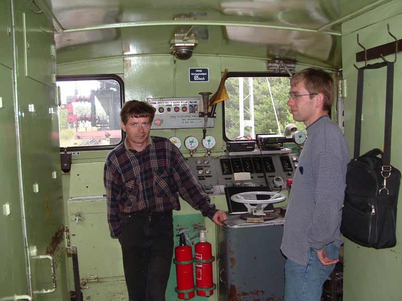 W jednej z nich, konkretnie dwójce mechanik zagadnięty o jazdę w kabinie odparł, że jeśli nic nie wyskoczy, a będzie wracał po ładunek, to nas zabierze. Jaka była nasza radość gdy po dwudziestu minutach oczekiwania siedzieliśmy w kabinie "krokodyla".