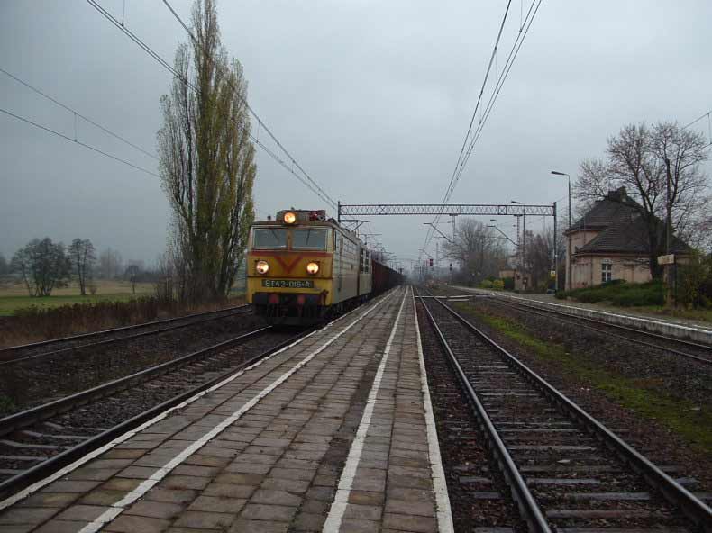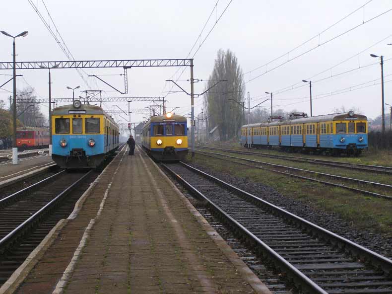 Po kilkudziesięciu minutach w zatłoczonym pociągu, wysiedliśmy w Zduńskiej Woli, niestety zaczęło padać, kilka zdjęć czterech "kibli" stojących na stacji i wzdłuż torów ruszyliśmy w stronę Karsznic.