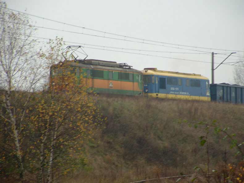 Całe szczęście, że nie dyskutowaliśmy zbyt długo, bo dochodząc do wiaduktu zobaczyliśmy jadącą WM10 a z drugiej strony "prywaciarza" ze Szczakowej, pełny odlot, mimo siąpiącego deszczu i niskiej temperatury nastroje wyraźnie nam się poprawiły. Ruszyliśmy z buta i rozwinęliśmy taką prędkość, że po kilku chwilach zaczęliśmy się przegrzewać, a trzeba dodać ze z powodu marnego stanu pobocza szliśmy po torach, co nie jest najbezpieczniejsze, ale i tak lepsze niż przedzieranie się przez krzaczyska.