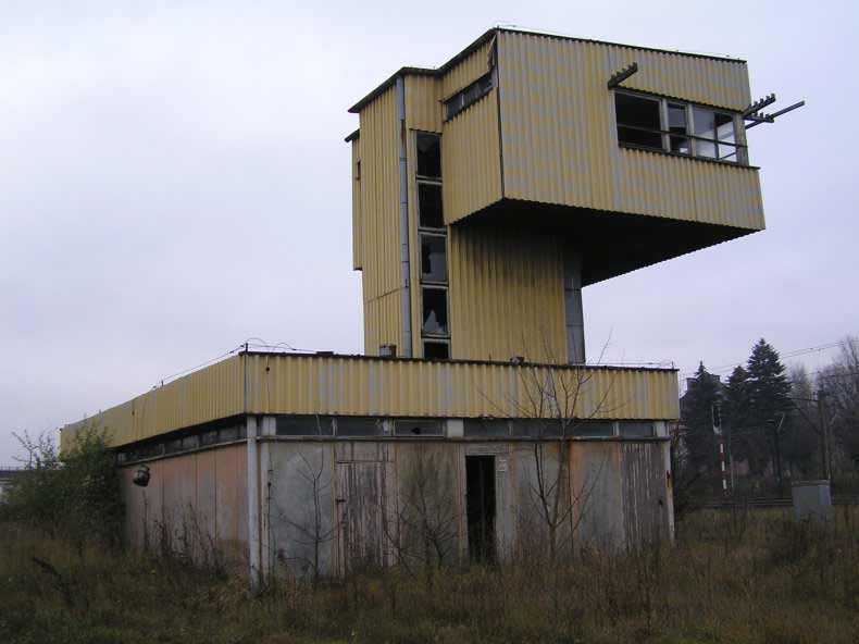 Ignorujemy go, kolejne wezwanie, idziemy na koniec peronu, dzielny człowiek wychodzi i idzie za nami, ja bym się nie odważył na takim zadupiu zaczynać z czterema podejrzanymi indywiduami, wracamy, "cabalero" przezornie chowa się w służbówce. Jedziemy jeszcze pod nastawnię, prosta funkcjonalna budowla, nastawniczy jakiś normalniejszy, informujemy go o chęci zrobienia zdjęć, kiwa głową na znak zgody.