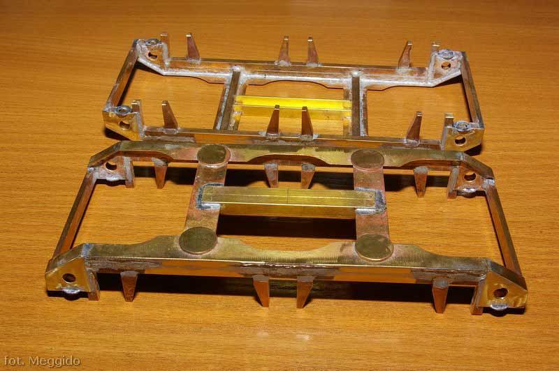 Pudło polakierowane, czas dalej na wózki. Tama polutowana i wykroje maźnicze