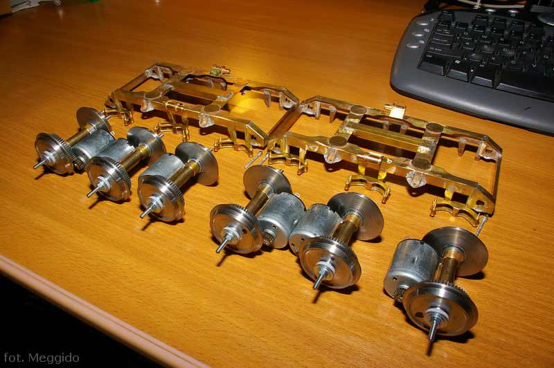 Widać już poskładane wózki, działające, razem z napędem i zawieszeniem. Każda