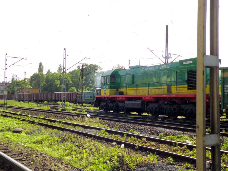 Godzina odjazdu składu w kierunku stacji w Łazach była niewiadoma, a my nie mieliśmy zbyt wiele czasu, więc udaliśmy się w dalszą podróż, lecz tym razem inaczej niż zwykle, bo poprzez Zawiercie, Łazy i Dąbrowę Górniczą. Pomysł był przedniej marki, a miejsca przez nas odwiedzane dostarczyły mnóstwa kolejowych emocji. Już w Zawierciu na grupie towarowej kilka prywatnych składów towarowych, kilka osobówek- przeważnie z „kiblem” w roli głównej, choć pociąg osobowy do Gliwic prowadzony całkiem ładną „siódemką” składał się z pięciu „bohunów” !!! Deserem okazał się zmodernizowany „gagar” 301D-20 wyciągający z jakiejś kopalnianej bocznicy ładowny skład z węglem na grupę odjazdową. Ładny, nie ładny to już rzecz gustu. Dziś mamy taką kolej i za lat kilkanaście powstawać będą makiety z epoki VI i jeżdżącymi po nich modelami tych lokomotyw. Musimy się pogodzić z ewolucją kolei i przemijaniem miłych naszemu sercu serii taboru.
