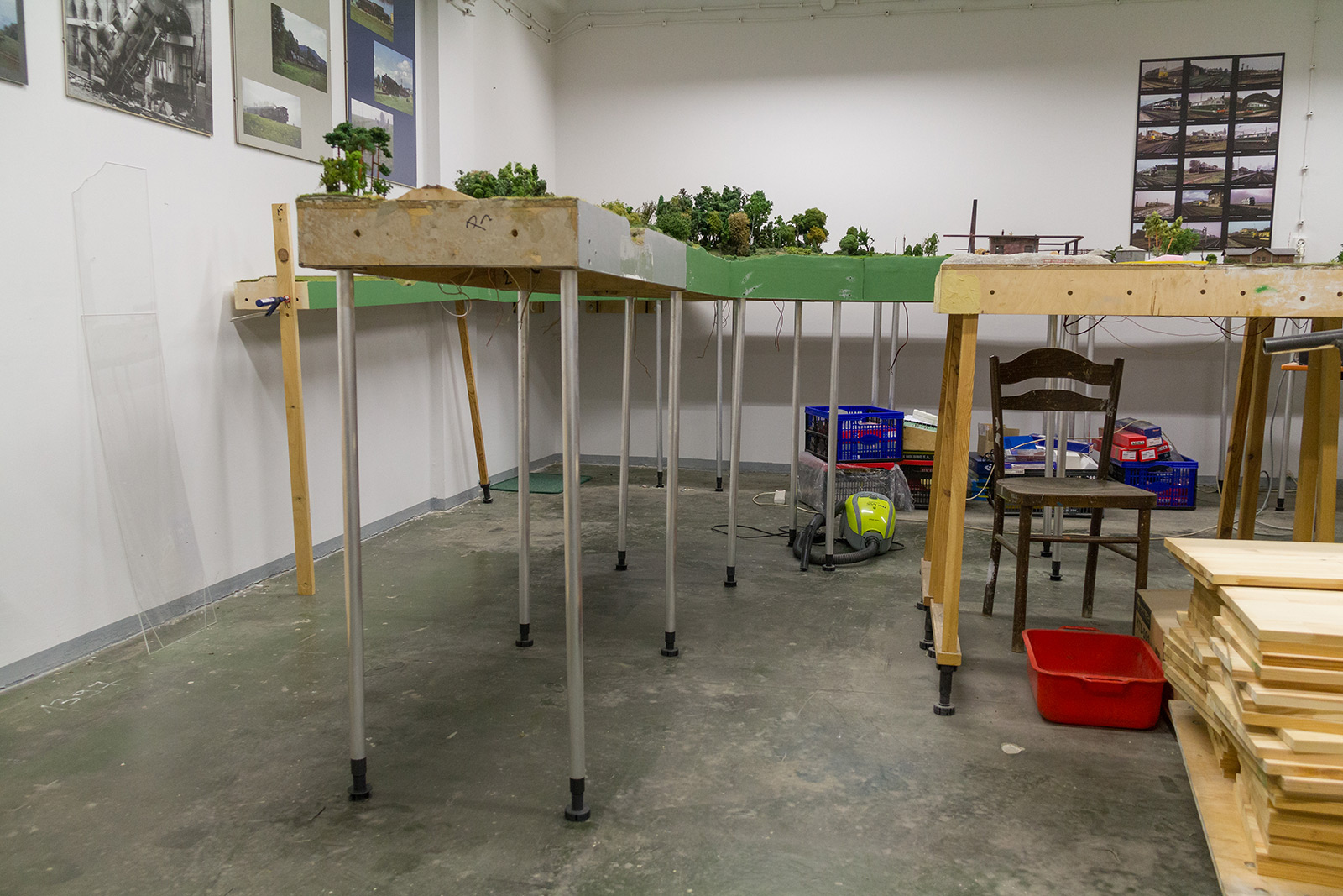 Jednocześnie trwają intensywne prace adaptacyjne nowego pomieszczenia. Dzięki wsparciu finansowemu naszego nowego kolegi klub zyskał sporo powierzchni i tak pomieszczenie z makietą będzie służyło jako część tylko i wyłącznie wystawowa a nowy pokój przygotowywany jest na modelarnię i wszystkie "brudne prace.