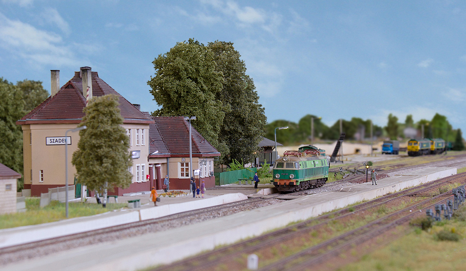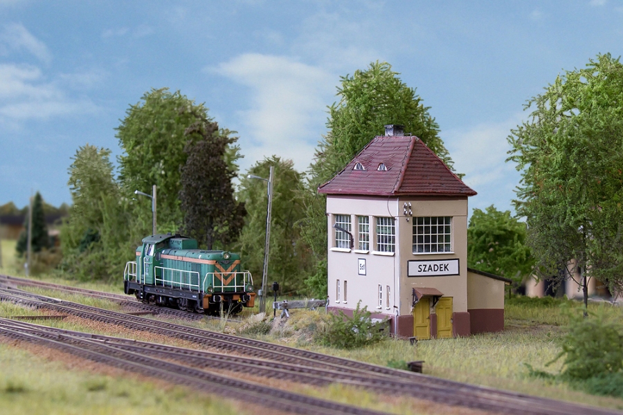 Szadek, stacja położona na magistrali węglowej –największej inwestycji przedwojennej Polski. Jedna z wielu podobnych rozłożonych w miarę regularnie wzdłuż całej długości linii. Pamięta zarówno Trumany (Ty246), potężne amerykańskie parowozy, jak i dwuczłonowe elektrowozy kursujące w czasach największych przewozów węgla. Trzy krawędzie peronowe, ładownia, typowe dla węglówki zabudowania stacyjne. Ducha starej kolei przypominają mechaniczne okręgi nastawcze i rząd naprężaczy. Świetlna sygnalizacja wyraźnie wskazuje, że idzie nowe. Odgałęzienie odchodzące z peronu 1 umożliwia dojazd do P.O. Kaczorowo i dalej do małej stacyjki Paproki, a pośrednio do cukrowni Leśmierz.