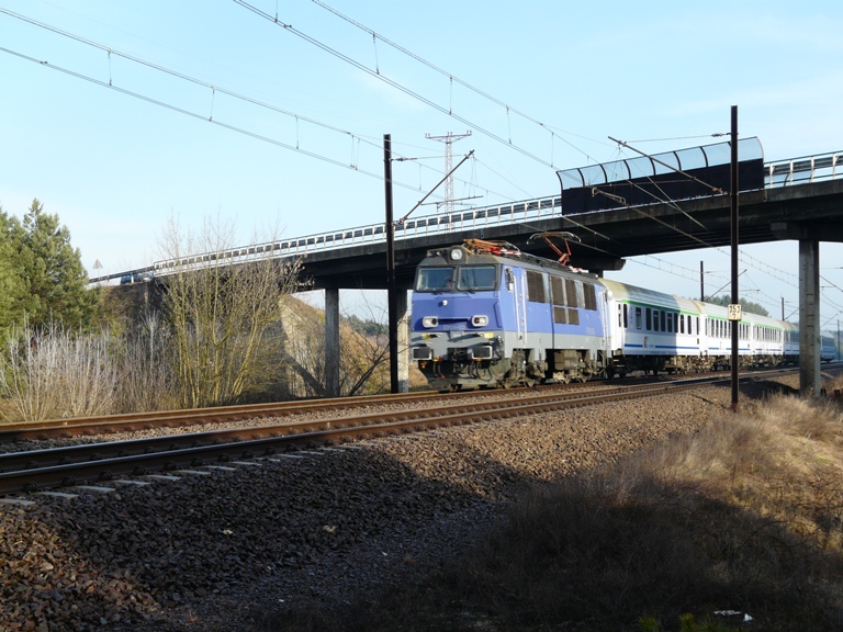 7.02 ruszamy skoro świt, Piotrek zabiera mnie i jedziemy po Kudłatego, też jak się okazuje zaziębionego, mijamy wsie i miasteczka, jak zwykle na 151 kilometrze CMK urządzamy postój, to już taka świecka tradycja.Po chwili jagodzianka EP09-024 z pociągiem kto wie dokąd śmiga w oszałamiającym tempie obok nas.