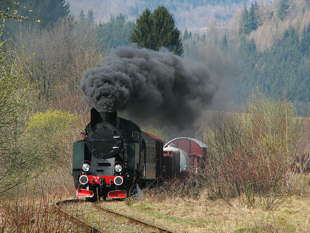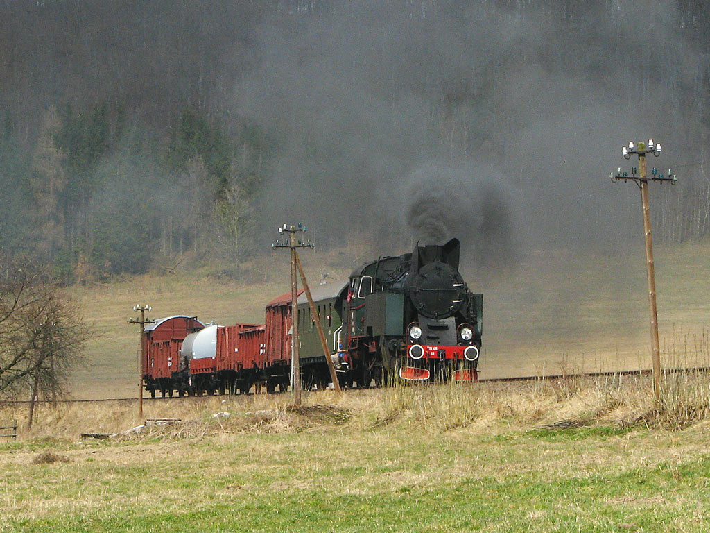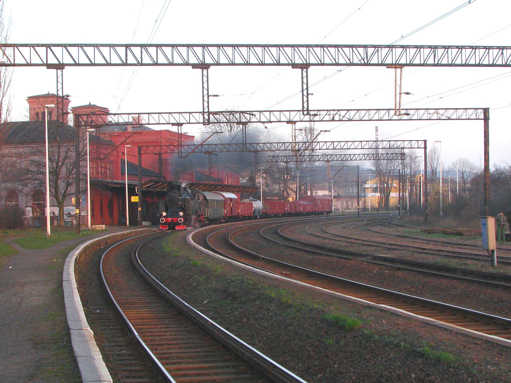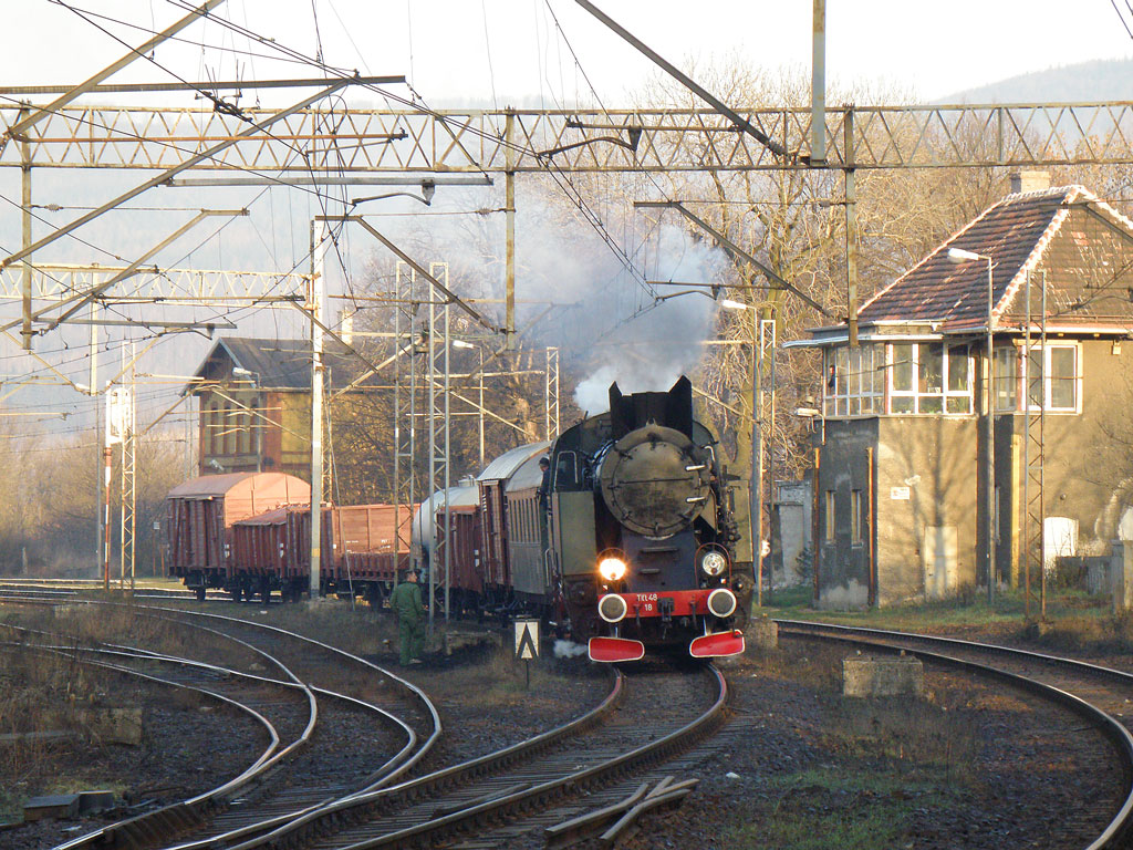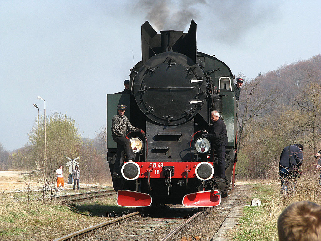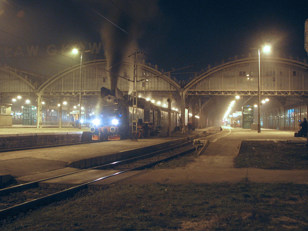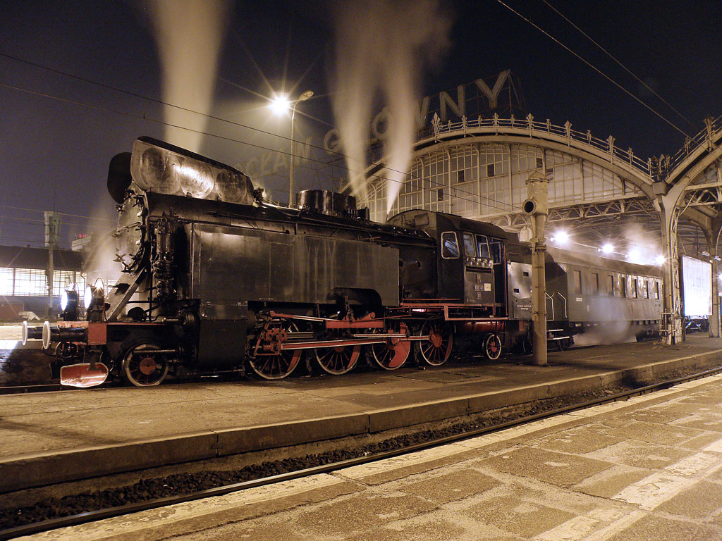 W dniu 4 kwietnia 2009 Klub Sympatyków Kolei we Wrocławiu zorganizował przejazd pociągu specjalnego w relacji Wrocław Głowny - Marciszów - Wojcieszów Górny - Wrocław. Pociąg prowadził parowóz TKt48-18, skład zestawiony był z jednego wagonu osobowego typu Ci28 oraz 7 wagonów towarowych, które w minionym okresie zostały wyremontowane przez członków KSK. U nas w klubie jakoś nikt nie przejawiał zbytniego entuzjazmu z tej okazji i być może impreza przeszłaby bez echa gdyby nie inicjatywa Piotrka. Zarzucony temat trafił na podatny grunt i od razu znaleźli się chętni. Zwłaszcza, że wyjazd zapowiadał się naprawdę wariacko, Piotrek po popołudniowej zmianie, ja po dwudniowym wypadzie służbowym a przed nami niemalże cała doba zmagania się z parowozem i odległością od domu. Ale cóż nikt nie mówił, że będzie lekko albo że my jesteśmy normalni. Tak więc o punktualnie o 01:10 Piter zabiera mnie i jedziemy po Nemo oraz Radka by 30 minut później ruszyć przez nocną mgłę w kierunku Wrocławia. Aby zdążyć na wjazd parowozu na dworzec Główny Piotrek musiał ostro deptać i niestety będzie to pewnie drogo kosztowało bo tuż za Długołęką błysk flesza z masztu radaru podniósł ostro ciśnienie i popsuł radosną atmosferę wyjazdu. Na szczęście dalej obyło się bez podobnych nieszczęść. Udało się dotrzeć do Wrocławia na długo przed przyjazdem pociągu i snując się po stacji zdążyliśmy porządnie zmarznąć. Wreszcie sapiąc i gwiżdżąc sympatyczny uszatek wtoczył się w perony i liczne zebranych „mikoli” ogarnął szał focenia. My oczywiście na luzie podchodząc do tematu staraliśmy się wybrać miejsca z innej strony niż większość ale i tak panujące ciemności, światło sodowe oraz masa kolorowej, biegającej bez sensu sierści nie dawały szans na przyzwoite zdjęcia.