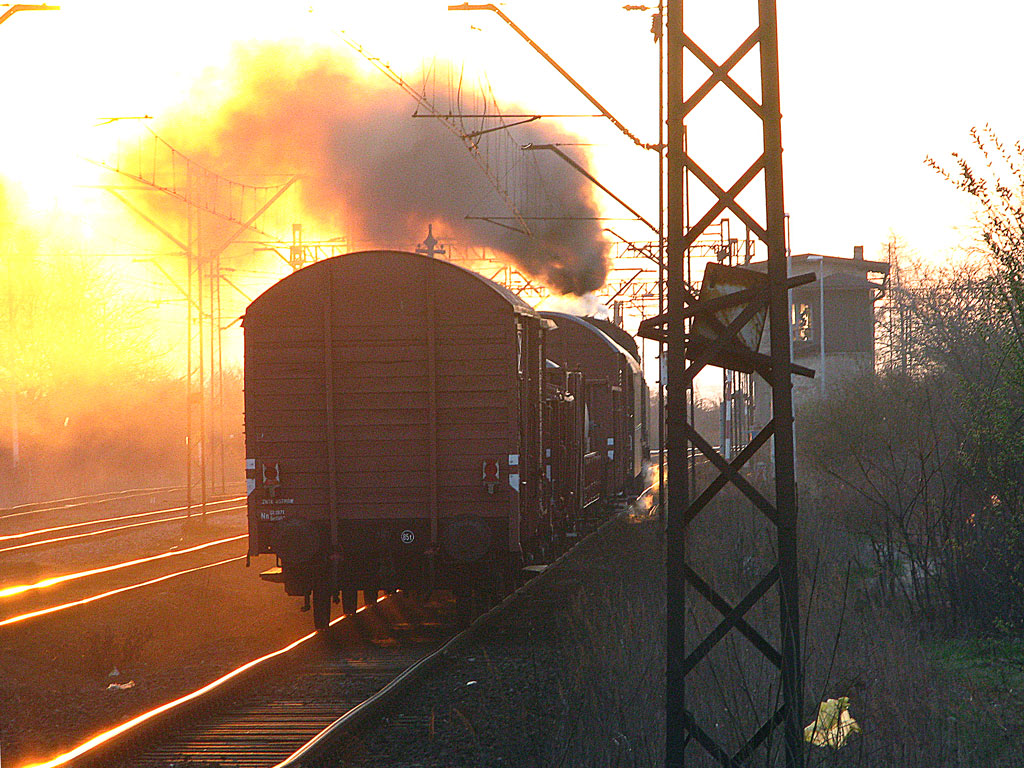 Nie czekając więc na odjazd pakujemy się z powrotem do auta i jedziemy w kierunku Świebodzic. Tam też witamy wschodzące właśnie słoneczko a niebawem dogania nas też parowóz i wreszcie możemy coś pstryknąć.