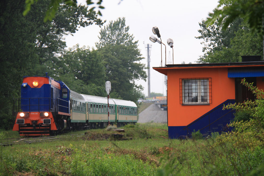 na szlak. Tamara z PCC oraz trzy wagony osobowe PKP tworzyły skład. Trasa Katowice,