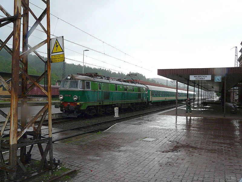 Przejazd „Sputnikiem„ do Jeleniej Góry z Wrocławia, niesamowita gratka dla MK i innych normalniejszych, dostałem zaproszenie od Piotrka, trochę mnie to zdziwiło, ponieważ ostatnimi czasy jakoś pomijany byłem w doborze składów wycieczkowych. Czy to za sprawą niewyparzonej gęby, czy też wszechobecnego krytykanctwa, a może sam nie wiem czemu, dość że dostąpiłem zaszczytu podróżowania z samym Prezesem i Skarbnikiem jego samochodem. Wyruszyliśmy w Niedzielę świtem mglistym, już pora deszczowa w Polsce zadomowiła się na dobre, lecz poranek ten w miarę pogodnym miał pozostać. Droga jak droga, nie za szybko nie za wolno, już wiemy że mamy niedoczas, postanawiamy łapac skład po drodze. Trochę od tyłu dojeżdżamy do zapory na zalewie. Kilka zdjęc , dalej ku przygodzie, zaciągac się zaczyna i już w Wałbrzychu spotyka nas mały potop, oczywiście Piotrek musi na stronę, sekunda i dalej, a tu siurpryza, zgubił telefon, wracamy, jest leży kałuży i brzęczy, emocji huk, Radek gna w potokach wody, Piotrek rozbiera telefon. W miejscu w którym już kilka razy na imprezach zatrzymywaliśmy się, cykamy „kibelek” i zajmujemy stanowisko, czekając na jak mamy nadzieję spóźnionego „Sputnika”. Czekamy pół, drugie pół, i trzecie, mowa oczywiście o częściach godziny, niestety GŻ w śladowych ilościach na dnie, na dwóch mikroskopijna dawka. Coś jedzie, wow, jest, ale ET41-048, zwiastun dobrego początku czy raczej koniec, jedziemy na stację, Piotrek idzie do zawiadowcy, wraca już w strugach deszczu, raczej z nietęgą miną, oznajmia nam że pomylił daty i sputnik jechał w Sobotę, czyli mogliśmy Se na niego czekac, ze względu na ogólnodostępnośc naszych eposów, nie zacytuję słów które padły w ciągu kilku minut zagłuszając deszcz skutecznie. Ale jak relaks to relaks, pędzimy do Wałbrzycha, oglądamy sobie „sputników „kilka , kilka zdjęc w przerwach między kapielą, Nowa Ruda, chwilka, znów dalej, kopalnia kruszcu, cicho nikt nie pilnuje, rozłazimy się jak pchły, robiąc zdjęcia. Kłodzko zostawiamy samochód dośc daleko, maszerując z buta, spotykamy 311D- 04 oraz T448P-099 stojące pod murem oporowym, dwie szutrówki z Dolkomu, sporo oczekujących, żadnego pociągu, dobrze że choc się wypogodziło. Późno już czas wracac, poniedziałek już na nas czeka z nową porcją obowiązków i niespodzianek w służbie RP. Wycieczka daleka, mimo wszystko udana.