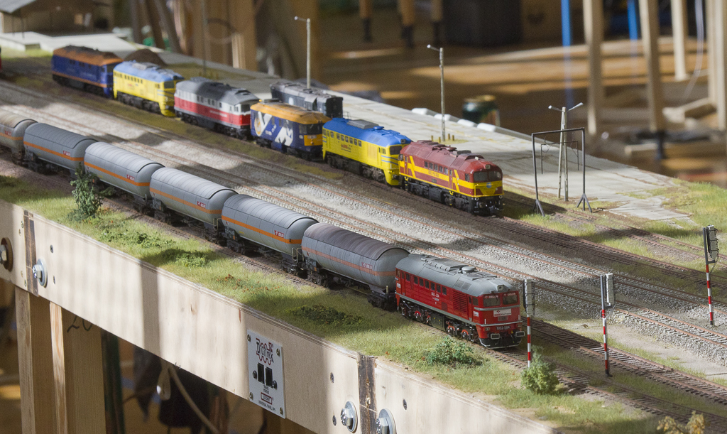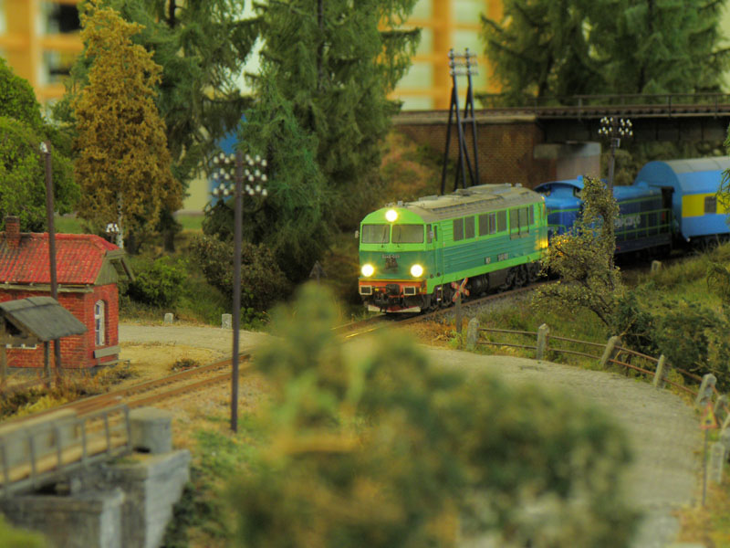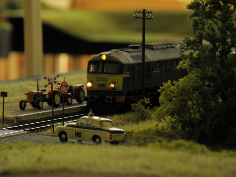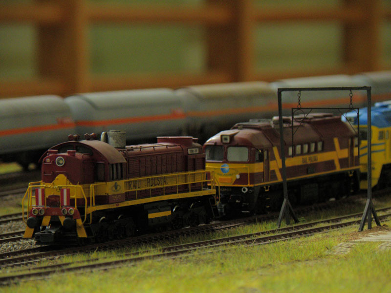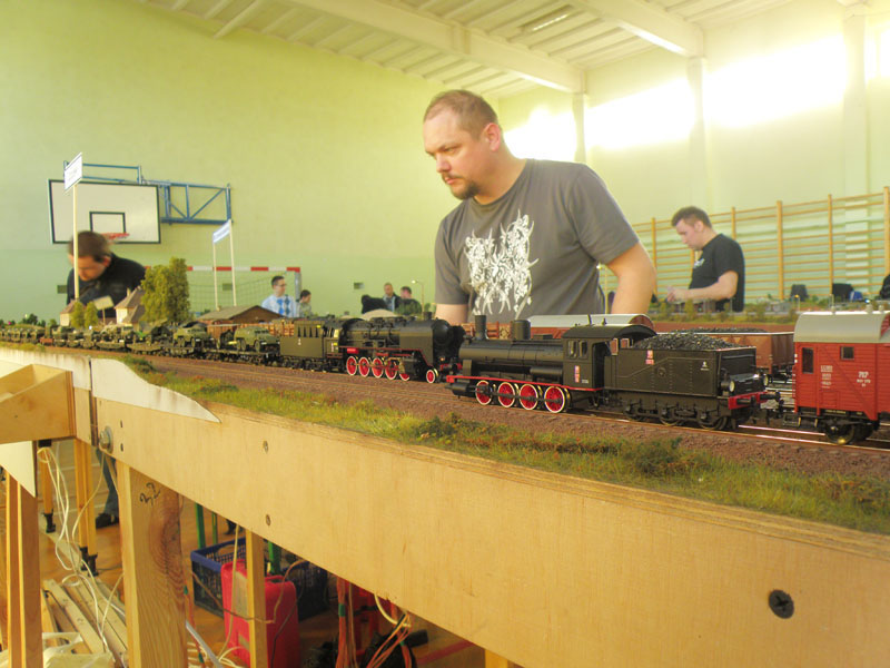 W dniach 8-10 kwietnia br. odbyła się druga już impreza organizowana przez Klub Hazero Poznań w Rogalinku. Podobnie jak w poprzednim roku główną atrakcją (oprócz oczywiście aspektu towarzyskiego) była zamknięta (bez udziału publiczności) zabawa przy wspólnej makiecie. Po raz kolejny uczestników ruchu kolejowego (maszynistów i dyżurnych) obowiązywał rozkład jazdy, zaś samo spotkanie umożliwiło nie tylko wzajemne „dotarcie się” przed następną publiczną prezentacją, jakie z reguły mają miejsce jesienią (targi Trako w Gdańsku, Salon Hobby w Poznaniu itp.), fragmentów makiet powstałych w różnych częściach kraju, ale także zwykłą zabawę posiadanym taborem. Podobnie jak w zeszłym roku ŁKMK wziął czynny udział w spotkaniu, „wpinając” w całość prezentowaną (i sprawdzoną w „boju”) już wcześniej makietę stacji Szadek, której oryginał znajduje się na magistrali „węglowej” w bliskim sąsiedztwie Łodzi. Nasz kolega Marcin „marcinlok” Żemkowski przywiózł nowe segmenty swojego dwutorowego zelektryfikowanego szlaku. Coraz częstsze pojawianie się na podobnych spotkaniach trakcji elektrycznej cieszy, chociaż jak na razie najczęściej wciąż jest to tylko atrapa stanowiąca raczej dekorację, a elektrowozy z reguły jeżdżą z opuszczonymi pantografami. Niemniej jednak monopol jednotorowych linii lokalnych z dominującą trakcją parową został wyraźnie przełamany, co z pewnością urozmaica modelowe szlaki. Jeśli chodzi o tabor poruszający się po miniaturowych torach, można było ujrzeć pełen przekrój epok, łącznie ze współczesnymi przewoźnikami prywatnymi. Po raz kolejny doskonale sprawdził się cyfrowy system sterowania ruchem LocoNET, a idea indywidualnego sterownika (tzw. Freda) przypisanego do jednej, konkretnej lokomotywy, który maszynista zabiera ze sobą podążając za składem i w razie potrzeby „wpinając się” do systemu by zmienić prędkość prowadzonego pociągu okazała się strzałem w dziesiątkę.
