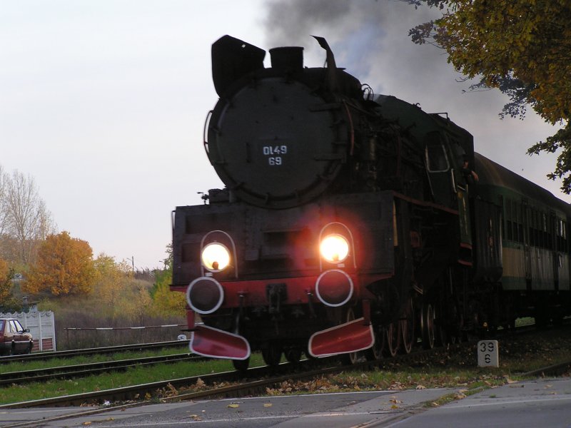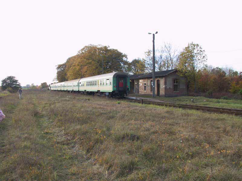 Jest zjazd, mały przystanek, zdążyliśmy tylko wypaść z aut i już Ol49-69 jak ekspres wpada w perony, kilka zdjęć i tyle ją widzieli, od dzięwczęcia, które przyjechało onym pociągiem dowiadujemy się, że jest to miejscowość Trzebaw-Rosnówko (mam nadzieję, że dobrze usłyszałem nazwę).