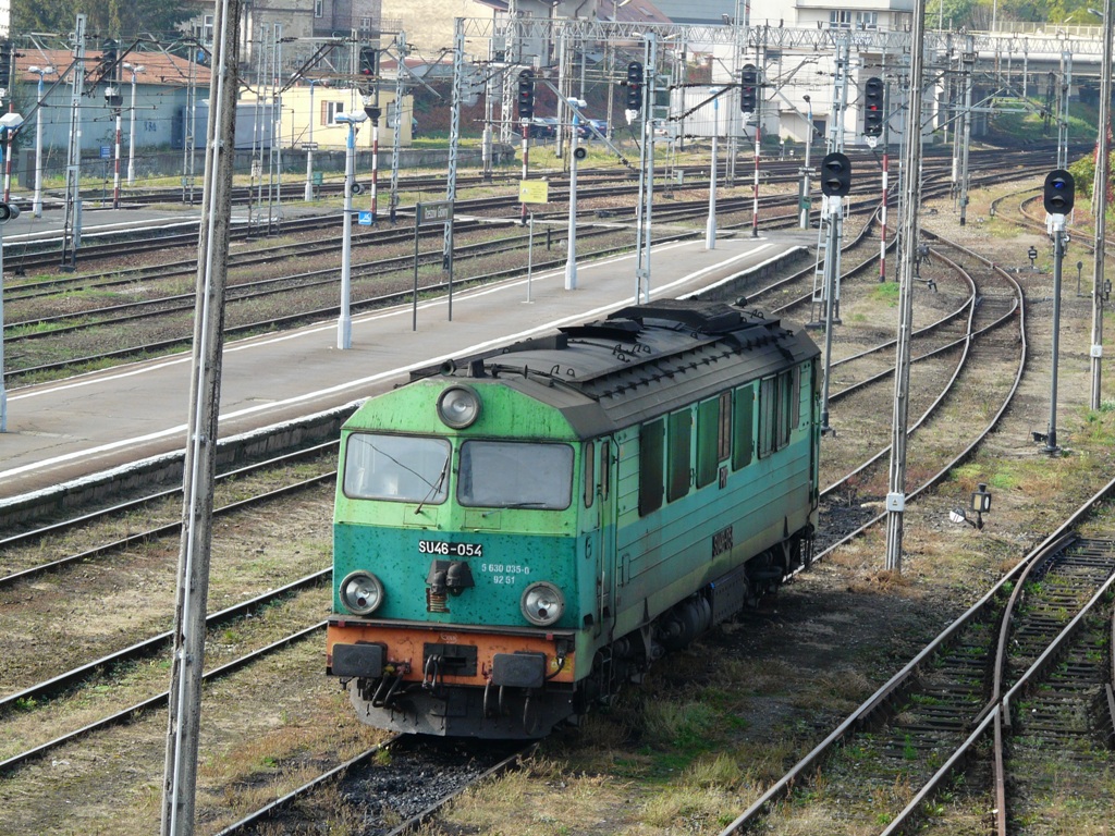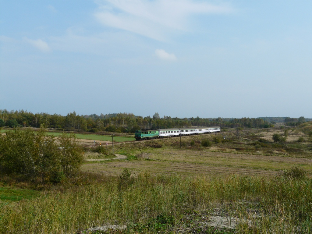 Jedziemy i jedziemy, miasto Krosno, stajemy w Mc na kawę, Piotrek dostaje telefon od Grześka Nycza o pociągu prowadzonym SU46-054, nie potrzeba było nam dużo czasu aby zmienić trasę powrotnej drogi, gnamy na Rzeszów, raz dwa i po chwili na stacji już byli, cyknęliśmy Grześka podczas odjazdu jego pociągu, posnuliśmy się tam gdzie wolno i nie wolno, fotka „suczki” i na miejsce w okolicach Kolbuszowej, po telefonicznych ustaleniach pewien miejscowy, miłośnik żelaznych szlaków ma nam pokazać dogodne miejsce do zdjęcia, czekamy na niego na stacji benzynowej, jedziemy okazuje się nim jeden z wczorajszych towarzyszy bieszczadzkich podróży, wspinamy się na górę i po chwili robimy zdjęcia.