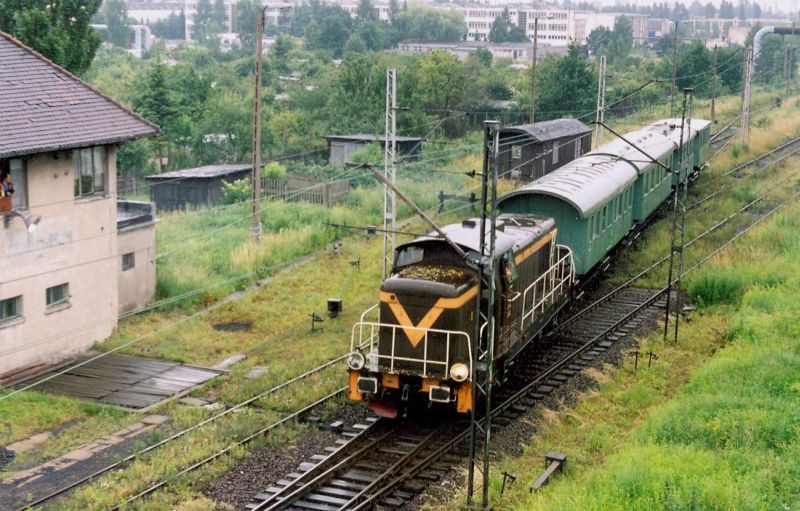 Trzeba było pojechać po ukryty na bocznicy wagon, tu musimy się pochwalić, że jak przystało na rasowych miłośników kolei wprosiliśmy się na teren zakładów i z doczepionym wagonem wróciliśmy (ja i Piotrek Barcz) stojąc na podeście lokomotywy, zrobił nam zdjęcie w tej epokowej chwili Radek, niestety zdjęcie nie wyszło i pozostaje nam tylko jego świadectwo.