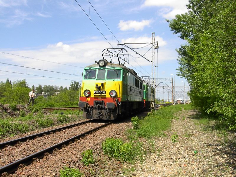 Na dworcu udajemy się wzdłuż torowiska i zajmujemy stanowisko, z dala od tłumów, pojawiają się dwie EU07 jedna zielona druga pięknie zażółcona, przystają na chwilę po d światłami, po czym odjeżdżają zwalniając miejsce drogiemu gościowi.