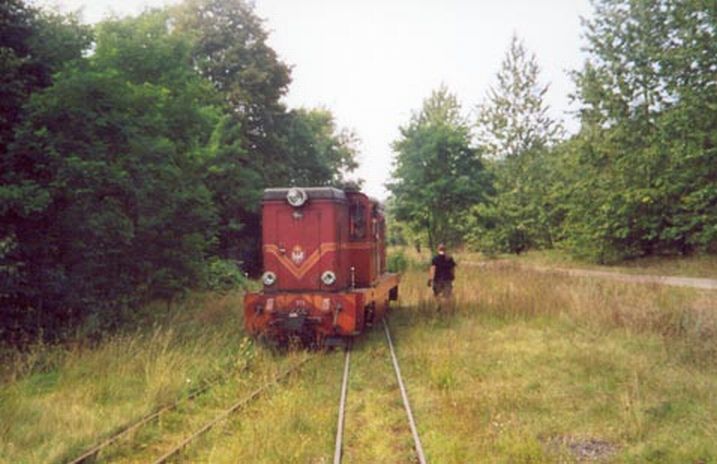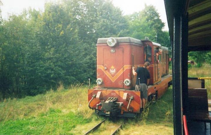 Zatrzymujemy się, aby coś zjeść, Rysiek ma wszystko zapakowane, nawet nóż i serwetki, jego żona jest niesamowita, ja wypadam blado z pośpiesznie przygotowywanymi kanapkami. Piotrek, mimo iż jest najchudszy bije nas na głowę ilością jedzonka, idę do piekarni uwagę przyciągają smakowicie wyglądające bułki z serem kupuje cztery i tu pierwszy szok mimo olbrzymich wymiarów i potężnego ładunku sera płacę za nie po 90 gr., chwilę rozmawiam ze sprzedawczynią, gdy dowiedziała się, że będziemy je zaraz jeść dodała mi serwetki, gdzie w naszym mieście ktoś podchodzi tak do klienta? Wracamy na wąskotorówkę, chodzimy po torach oglądamy tabor, kilka zdjęć.