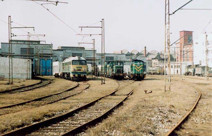 Przed halą napraw ET22-615 ST44-165, SM30-040, SM42-141 SM30 wyciąga ET42 z hali napraw
