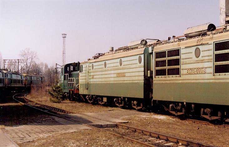 ET40 przed halą napraw Gagarin i zestawy kołowe A tędy dokąd?