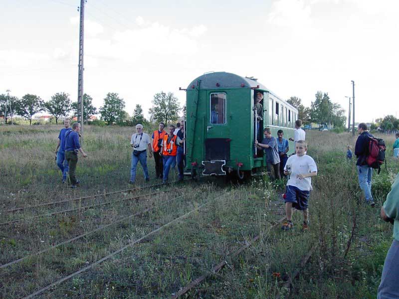 Odczepiony wagon został na stacji, a z nim kilku panów, reszta motorówką pojechała pod bramę, niestety nieczynnej cukrowni w Brześciu Kujawskim.