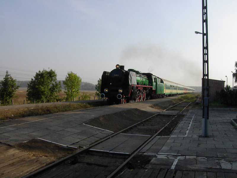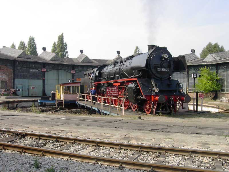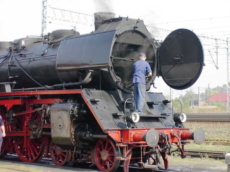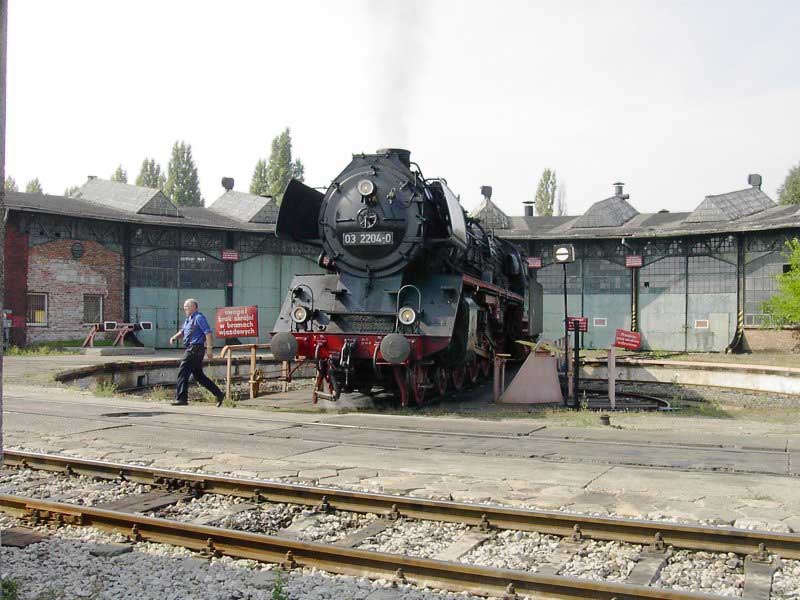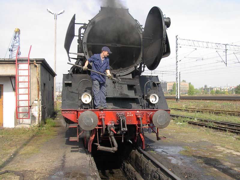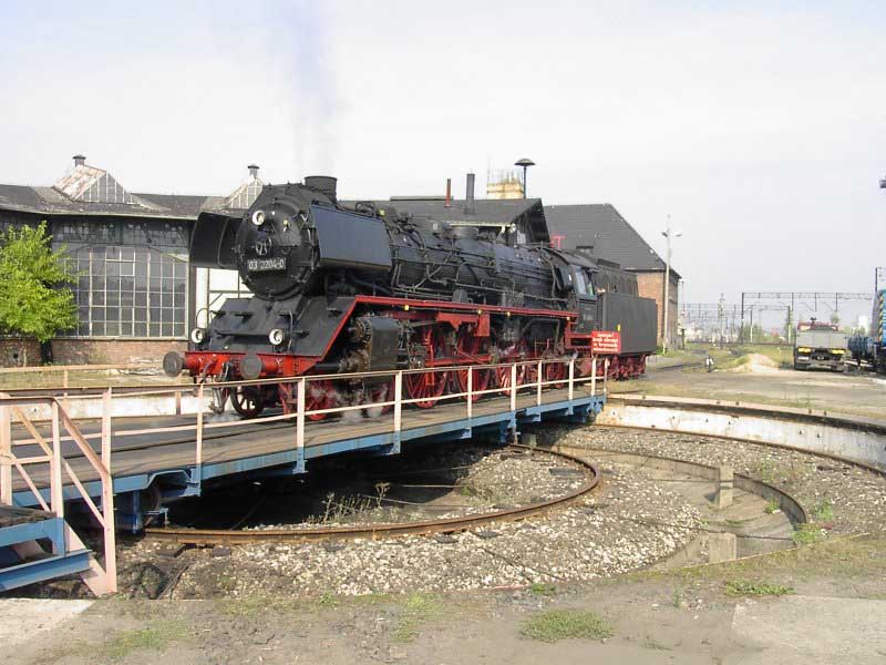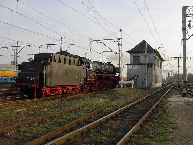 Wycieczka zorganizowana "na szybko" stała się konsekwencją wizyty w EMPIK-u. Lektura Eisenbahn Kuriera pozwoliła odnaleźć wśród wielu ogłoszeń, również i to o wizycie parowozu BR03 2204-0 w Poznaniu. Zerknięcie na stronę łużyckiego klubu, którego parowóz jest własnością i decyzja o wyprawie do stolicy Wielkopolski gotowa. W perspektywie są jeszcze, co najmniej dwa parowozy. Jadący tego dnia do Wolsztyna "Grzybiarz" z Pm–36 i Borsig na Maltance. Cicha nadzieja, bo pewności nie mieliśmy żadnej, że to wszystko się potwierdzi, gnała nas Roberta "Felą" od szóstej rano. Pierwsza radość po dotarciu na miejsce, gdy przed szopą na Malcie trafiamy na rozpalonego Borsiga. Już jest dobrze. Jeśli reszta się nie potwierdzi, mamy wdzięczny temat na fotograficzne plenery. Kilka fotek i grzejemy na Poznań Główny, gdzie spodziewamy się pierwszego tego dnia dużego kopciucha. Rozpacz nasza sięga zenitu, gdy nad budynkiem dworca dostrzegamy kłęby czarnego dymu, pozostające za odjeżdżającą Piękną Heleną. Spoglądamy na siebie, potem na mapę i wszystko jasne. Grzejemy do Szreniawy. Jest szansa na zrobienie kilku ujęć na tej stacji, tym bardziej, że zawsze jadąc z Poznania do Wolsztyna brakowało czasu na zwiedzanie stacyjek na trasie.W Szreniawie jesteśmy kilkanaście minut przed pociągiem, więc spokojnie ustawiamy się na wybranych pozycjach i czekamy. Słychać Peemę z daleka. Po chwili już i widać. Przemknęła obok nas ze składem jak rasowy pośpiech. Zdążyłem zrobić cztery zdjęcia i pozostał w powietrzu dym i zapach parowozu. Kilka zdjęć stacji. Spacer do wjazdowego i jedziemy do Poznania. Na dworcu staramy się potwierdzić u dyżurnego informację o przyjeździe Niemców, niestety kilka wykonanych telefonów po nastawniach i na "górę" i nikt nic nie wie. Nie ma telegramu, nie ma pociągu. Mówi się trudno, idziemy w miasto, szlakiem modelarskich sklepów. Żadnych rewelacji, choć kilka drobiazgów nabyliśmy. Jednak głównym celem naszej wyprawy są parowozy, więc w celu napotkania jakiegoś przedstawiciela tego wymierającego gatunku, udajemy się ponownie na dworzec i to od razu pod okazałą szopę. Jeszcze nie zdążyliśmy dotrzeć do celu, a za plecami od strony dworca pojawia się coś czarnego. Rozdziawiliśmy ze zdumienia gęby. Oto majestatycznie, wolno, pojawia się okaz gatunku zagrożonego wyginięciem. Słynna BR03 2204-0 objawiła się nam w całej okazałości. Podczas naszych spacerów po Poznaniu, skład prowadzony owym cudeńkiem przybył do Poznania od strony Zbąszynka. Niewiele brakło, a ignorancja pracowników kolei pozbawiłaby nas okazji do spotkania z tym cackiem. Mieliśmy zamiar udać się na Maltę, na przejażdżkę Borsigiem i najciekawsza część wycieczki przeszłaby nam koło nosa. Jest to kolejny przykład na niemiecką solidność i wiarygodność, a jednocześnie dowód bałaganu i chaosu na kolei. Na terenie szopy odbyła się obsługa parowozu. Nie bez problemów dobrano wody i węgla, wyczyszczono palenisko, obrócono maszynę na obrotnicy. Była to niebywała okazja na zrobienie fantastycznych ujęć, w różnych konfiguracjach z naszym taborem. Po ustaleniu planów na dalszą część dnia, postanowiliśmy odbyć przejażdżkę parowozem na kolejce parkowej, gdyż zero–trójka pozostała odstawiona na bocznym torze do późnego popołudnia i nic więcej się nie działo. Jazda składem turystycznym z parowozem na czele to zawsze duża frajda, więc i ta część naszej zabawy była udana. Przy okazji wywołaliśmy poruszenie wśród miłośników kolei obsługujących Borsiga, informacją o wizycie niemieckiego parowozu. Okazało się, że nikt nie wiedział o tym fakcie i byliśmy jedynymi, którzy skorzystali z okazji zrobienia ciekawych zdjęć. Po powrocie na dworzec zrobiliśmy jeszcze wyjazd parowozu z "depo" w perony, gdzie czekał już skład wagonów. Lecz tym razem towarzyszyła temu już spora grupa miłośników z aparatami, którzy dotarli na dworzec. Wizyta takiego gościa jest sporą sensacją, nawet w Poznaniu, gdzie codziennością jest widok parowozu na stacji. Tego właśnie możemy kolegom z Poznania tylko zazdrościć, pozostając skazanymi na brak nie tylko parowozu, ale też choćby spalinówki innej niż stonka. Dlatego dzień taki jak ten pozostaje na długo w pamięci, bo może już nigdy nie będzie okazji "złapać" trzy sztuki wymierającego gatunku w jednym dniu i w jednym miejscu. No może w Wolsztynie, ale...