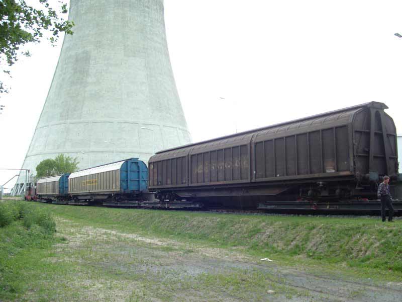 Bez najmniejszych problemów sympatyczna załoga odpowiadała na nasze pytania i opowiadała nam o pracy na tej ciekawej kolei. Tak w ciągu zaledwie kilkunastu minut znaleźliśmy się na ładowni w miejscowości Bogdałów, gdzie okazało się, iż składy inaczej niż w Koninie, nie są wpychane pod koparkę, a jedynie pod rampę załadowczą, do której węgiel dostarczany jest transporterami z odległej odkrywki. W ten sposób tory ułożone są na stałe a jedynie transportery przesuwają się wraz z koparką. Teraz wyjaśniło się, czemu lokomotywy z NRD, pracujące na tej kolei, mają zdemontowane boczne odbieraki.
