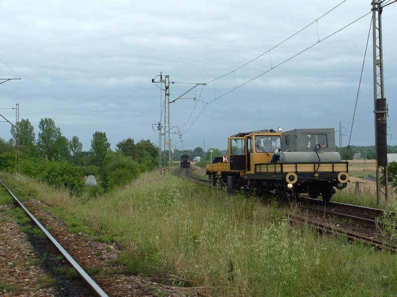 Z naszego miasta do Turku jest zaledwie siedemdziesiąt kilometrów, a jednak nigdy nie starczało czasu na odwiedzenie tego miejsca. Zresztą jak się okazało kolega Karol, który bywał tu setki razy również nie miał sposobności odwiedzić kolei Elektrownii Adamów. Zelektryfikowana linia kolei zakładowej wychodzi z terenu elektrowni w kierunku wschodnim. Po kilkuset metrach rozgałęzia się na dwie linie, z których najdłuższa biegnie około dwudziestu kilometrów na północ w okolice miejscowości Chylin, a nieco krótsza po około pięciu kilometrach przebiegu w kierunku wschodnim rozwidla się również na północ pod Bogdałów i południe w okolice miejscowości Słomów Kościelny. Nasze poznanie z tą koleją rozpoczęliśmy od podejścia do linii w okolicach mostu nad rzeką Teleszyną gdzie napotkaliśmy dobrze nam znany wózek motorowy WM10 należący do sekcji drogowej Elektrowni Adamów. Niesłychanie miły mechanik wózka opowiedział nam pokrótce o ruchu na tej sieci kolei, ale naszą rozmowę przerwał nadjeżdżający z kierunku Chylina skład z lokomotywą o numerze dwanaście.