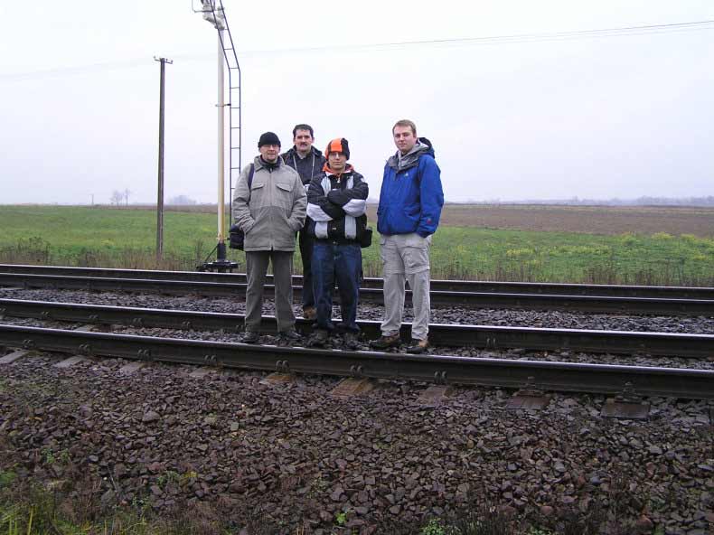 Kilka zdjęć i żegnamy się z Panem strażnikiem. Przejazd w Marzeninie, pada jak diabli, jeden towar, za chwilę drugi, zimno, mokro wbrew zasadom bezpieczeństwa robimy sobie wspólne zdjęcie właśnie na torowisku.