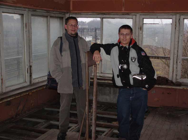 Ignorujemy go, kolejne wezwanie, idziemy na koniec peronu, dzielny człowiek wychodzi i idzie za nami, ja bym się nie odważył na takim zadupiu zaczynać z czterema podejrzanymi indywiduami, wracamy, "cabalero" przezornie chowa się w służbówce. Jedziemy jeszcze pod nastawnię, prosta funkcjonalna budowla, nastawniczy jakiś normalniejszy, informujemy go o chęci zrobienia zdjęć, kiwa głową na znak zgody.