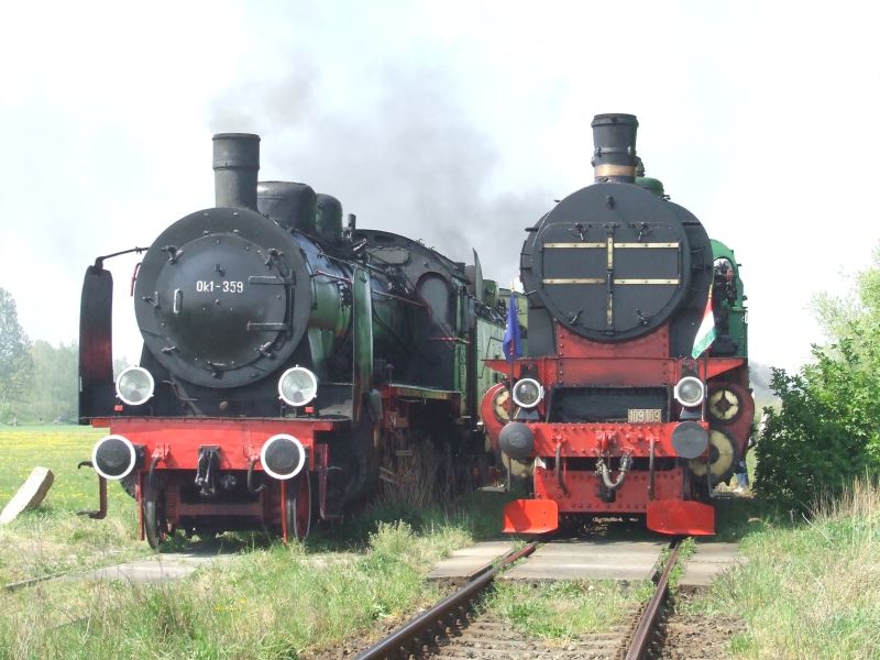 Relaks, trochę gaworzymy z miłośnikami z Austrii, i już się zaczyna, i tu okazuje się, że nasza lokalizacja jest bardzo dobra, parowozy dojeżdżają pod sam "nos", możemy robić spokojnie zdjęcia, młody Zvolack ma piękne zdjęcie z węgierskim parowozem, a właściwie na nim, piękna pogoda, doborowe towarzystwo, parowozy, czegóż chcieć więcej?