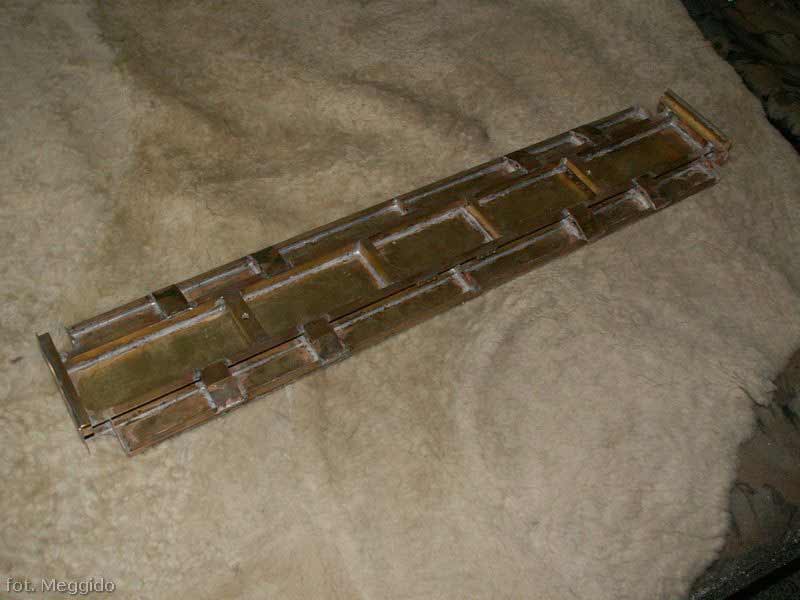 ścian czołowych i boczny wytrasowałem na blasze. Następnie wyciąłem otwory