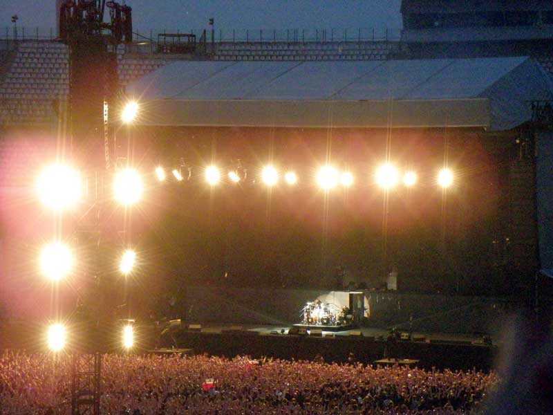 Tak więc naładowani uniesieniami kolejowymi w końcu dotarliśmy do celu ( nie bez perypetii, ale to temat na inną bajkę ;) ) - czyli miasta Chorzów. Pojazd nasz, potocznie nazywany „torbaczem” pozostawiliśmy pod czujnym okiem lokalnych stróżów prawa i udaliśmy się pieszo na słynny stadion śląski. Nie mogło zabraknąć klimatów szynowych i w czasie tej części podróży i tu mieliśmy do czynienia ze sto dwójkami , sto piątkami, oraz całą gamą innych nie znanych mi bliżej typów tramwajów. Aparat w tym czasie był głęboko zakamuflowany, gdyż wnoszenie sprzętu foto wyższej klasy niż 1,3 mpix w komórce, jest zabronione na tego typu imprezy ( copyrajty jakieś czy cóś ), stąd brak fotek z tej części ekspedycji. Dalej było już coraz mniej kolejowo, ale nie mniej o ile nie więcej emocjonalnie. Klasyk klasyków po kilkuletniej przerwie wraca na światowe estrady i nie wiedzieć czemu trasę swą zaczyna od naszego kaczogrodu, choć artykułowane w czasie występu wielokrotnie wspomnienia i postawa całej sześćdziesięciotysięcznej publiki rozwiewa wszelkie wątpliwości. Hetfield kilkakrotnie wspomina koncert sprzed czterech lat jak i wcześniejsze i podgrzewa publikę której jak i nam więcej nie było potrzeba. Zresztą jak to opisać? Lepiej kilka fotek . Chóralne śpiewy i ponad dwie godziny skakania rekompensowały Irkowi brak okrycia wierzchniego innego niż t-shirt, albowiem temperatura po zachodzie słoneczka sięgała zaledwie kliku, jak się wydawało stopni.