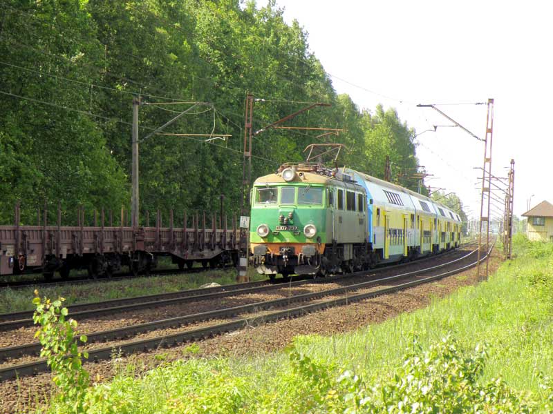 Kolejnym uniesieniom oddawaliśmy się w kolejno odwiedzanych Łazach i Dąbrowie Górniczej. Wszędzie tam powalała nas ilość taboru i mnogość serii. Pełna paleta typów i malowań. Wszędzie niespotykana u nas ilość składów oczekujących na odprawienie. Niestety czas jakim dysponowaliśmy kurczył się niemiłosiernie, a nie możemy zapomnieć iż celem naszej wyprawy są doznania estetyczne innego rodzaju, z gatunku sztuki raczej, niż techniki.