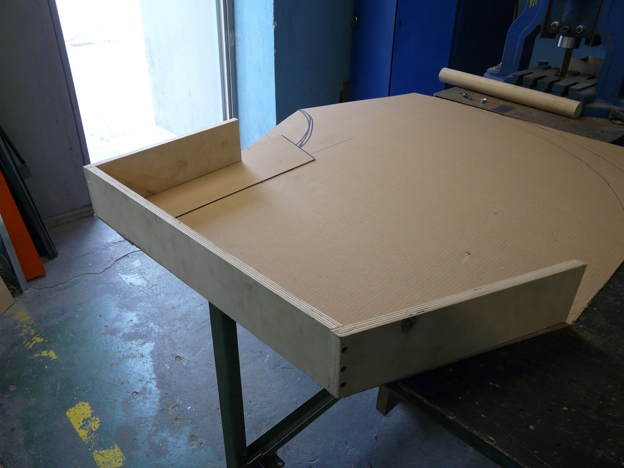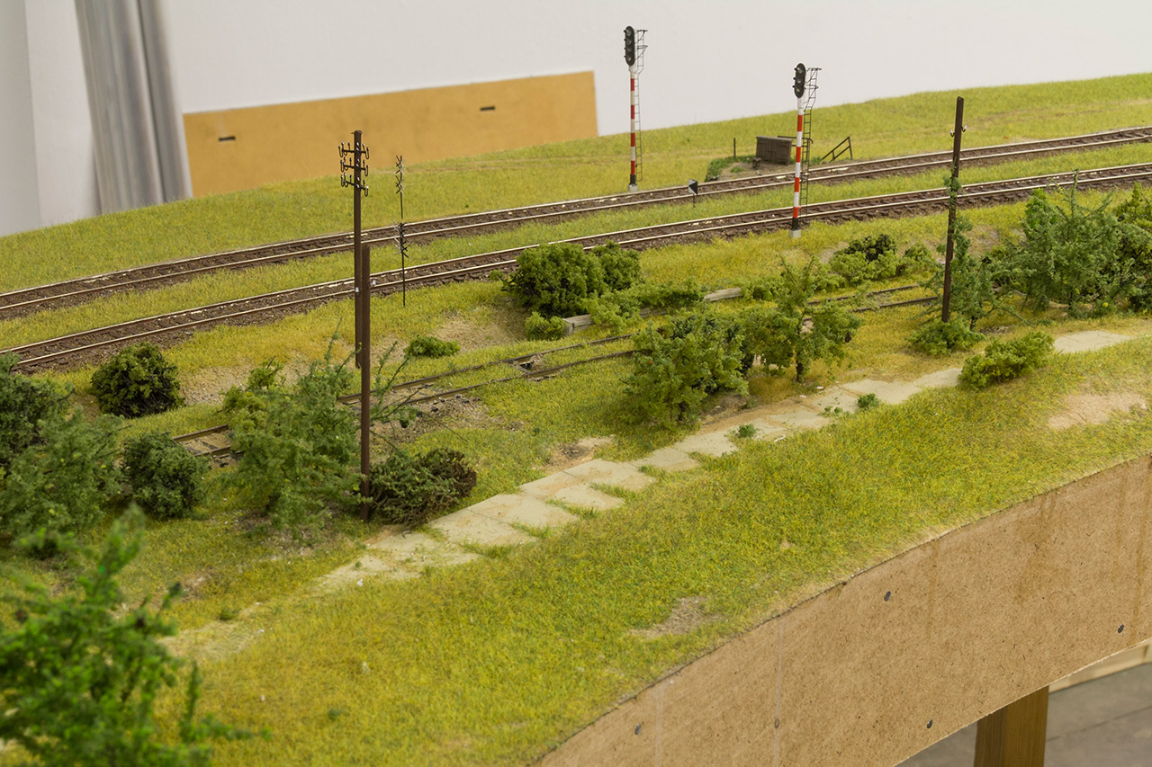 Na szczęście nie tylko gadamy ale też coś robimy. Makieta została rozkawałkowana i zaczęliśmy układankę "po nowemu". Piotrek R. szpachluje i maluje boki, Nemo zrobił już skrzynkę wjazdową na Szadek oraz wkomponował w "krowi" segment słup konstrukcyjny. Radek bawi się w Stwórcę i zazielenia Podg. Kaczorowo oraz odtwarza zieleń na segmentach wąskotorowych, ja robię dobre wrażenie i remizę OSP na Kaczorowie. Kilka obrazków z pola walki: